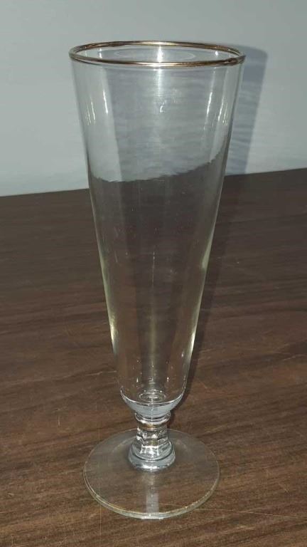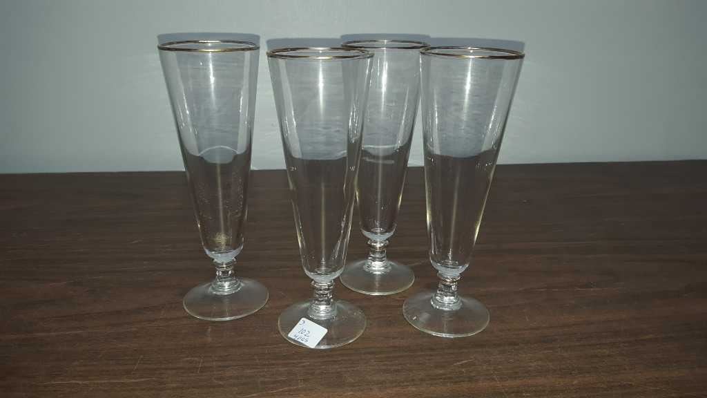 4 ANTIQUE BEER GLASSES WITH GOLD TRIM