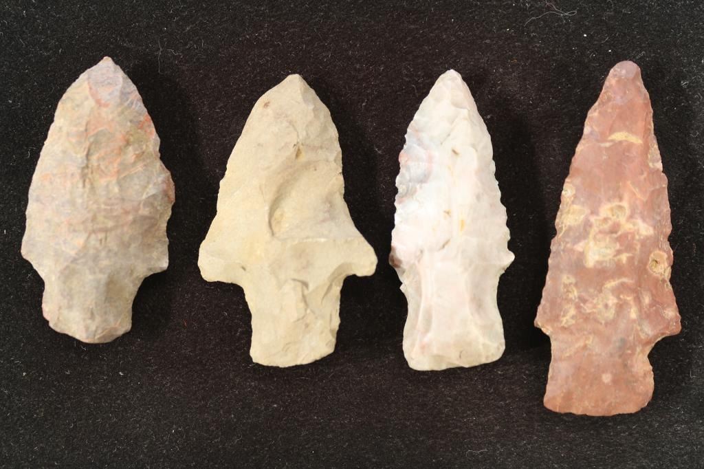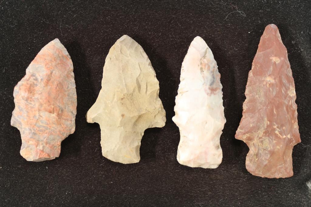 4 ASSORTED 1 3/4"-2 1/4" INDIAN STONE ARROWHEADS