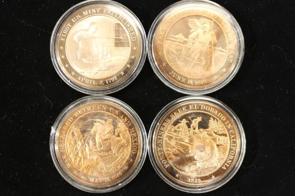 FRANKLIN MINT AMERICAN HISTORY. 1792 FIRST US MINT ESTABLISHED, 1842 FREMONT BEGINS MAPPING THE WEST, 1846 WAR DECLARED BETWEEN US AND MEXICO AND 1849 FORTY-NINERS SEEK EL DORADO IN CALIFORNIA