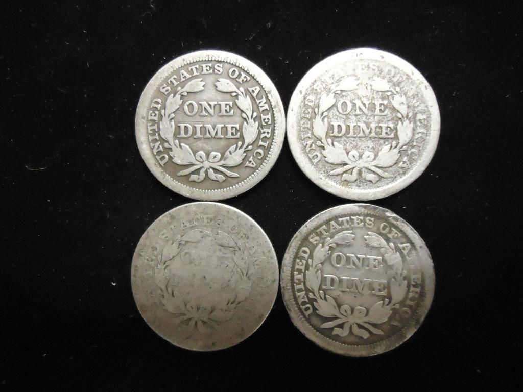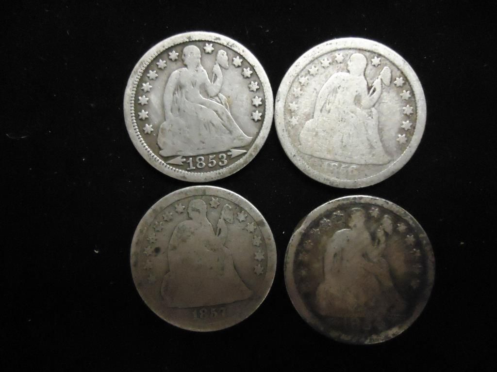 4 ASSORTED 1850'S SEATED LIBERTY DIMES