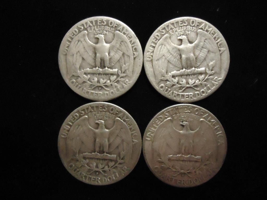 4 ASSORTED 1950'S WASHINGTON SILVER QUARTERS