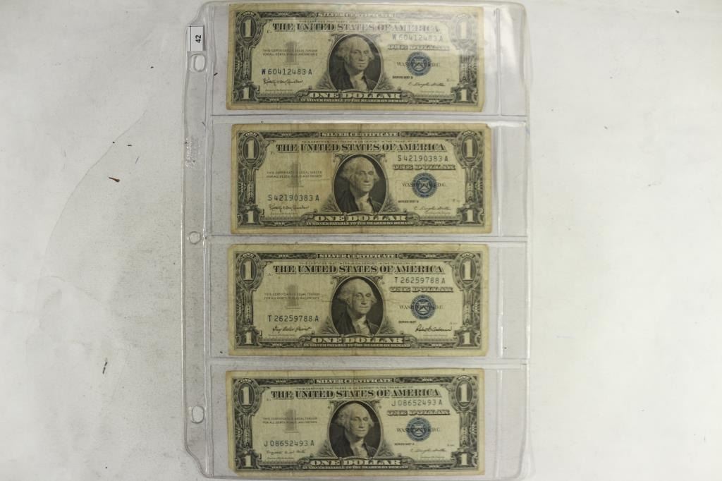 4 ASSORTED 1957 $1 SILVER CERTIFICATES BLUE SEALS