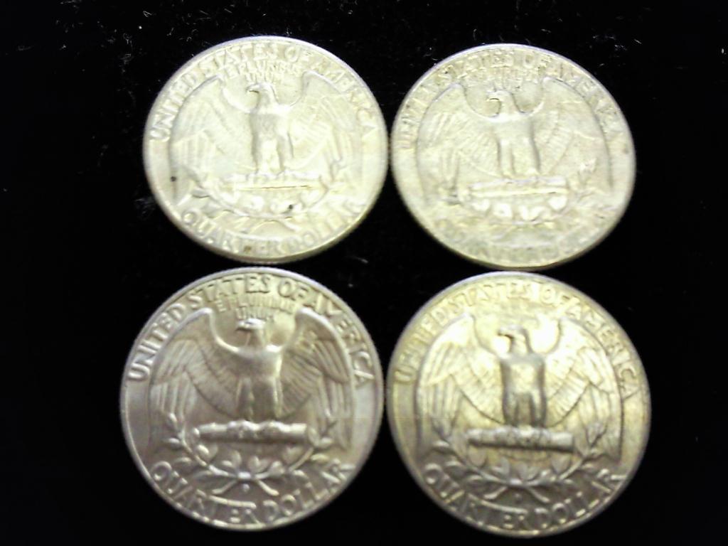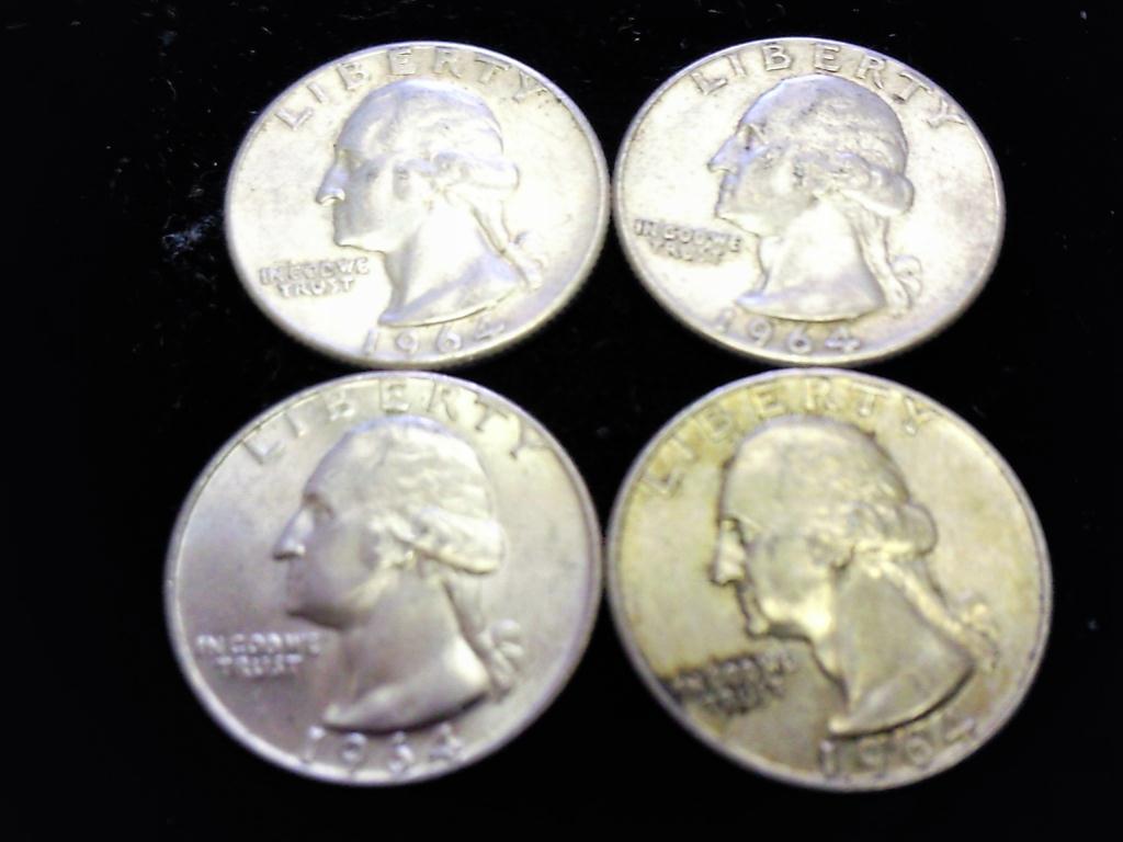 4 ASSORTED 1964 WASHINGTON SILVER QUARTERS