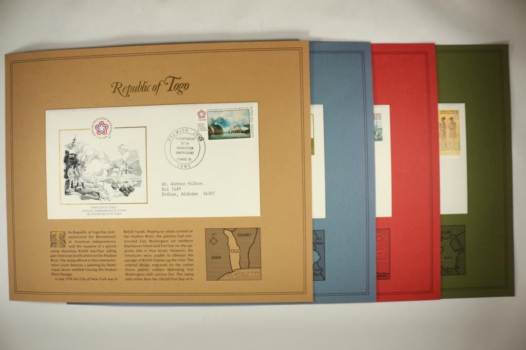 STAMPS ON INFO CARDS, REPUBLIC OF TOGO, THE ISLE OF MAN, BELIZE AND KINGDOM OF BELGIUM