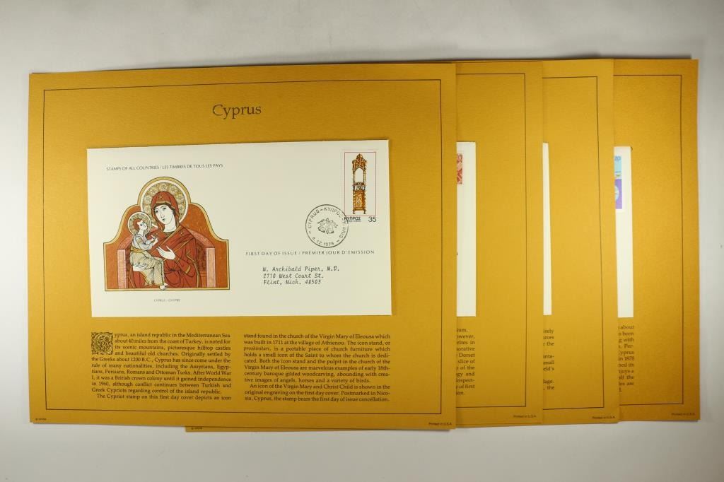AND STAMPS ON INFO CARDS, CYPRUS, GREENLAND, SURINAM AND TURKEY