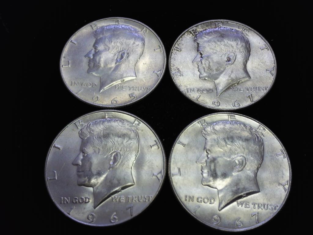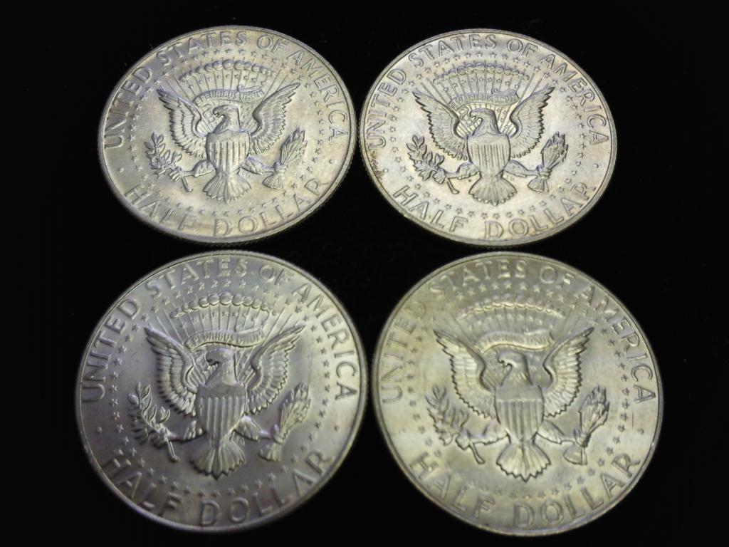 4 ASSORTED 40% KENNEDY HALF DOLLARS