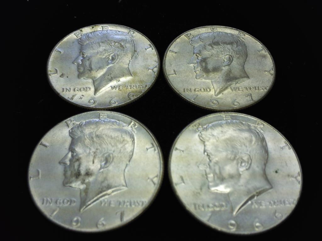 4-ASSORTED 40% SILVER KENNEDY HALF DOLLARS