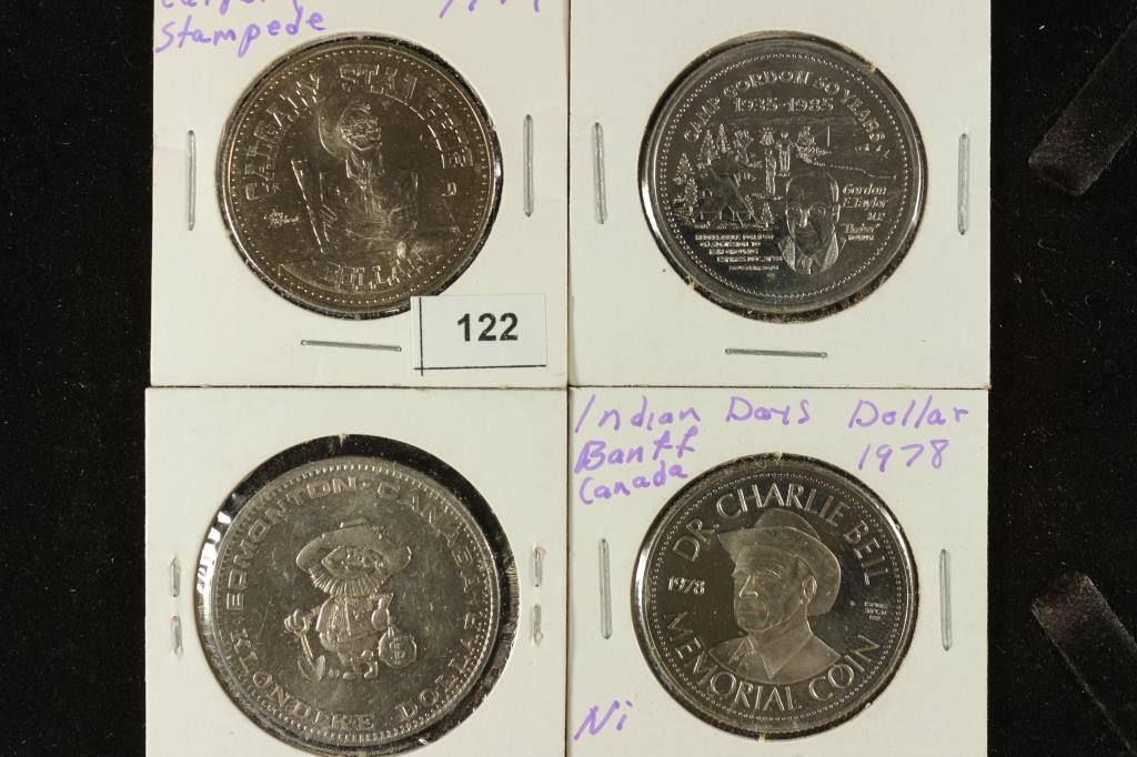 1979 CALGARY STAMPEDE, 1985 DRUMHELLER, 1972  EDMONTON KLONDIKE DOLLAR AND 1978 INDIAN DAYS  IN BANFF