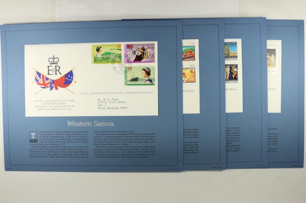 COMMEMORATIVE OF THE ROYAL COMMONWEALTH SOCIETY. WESTERN SAMOA, BOTSWANA, PITCAIRN ISLANDS AND SOUTH GEORGIA ON INFO CARDS