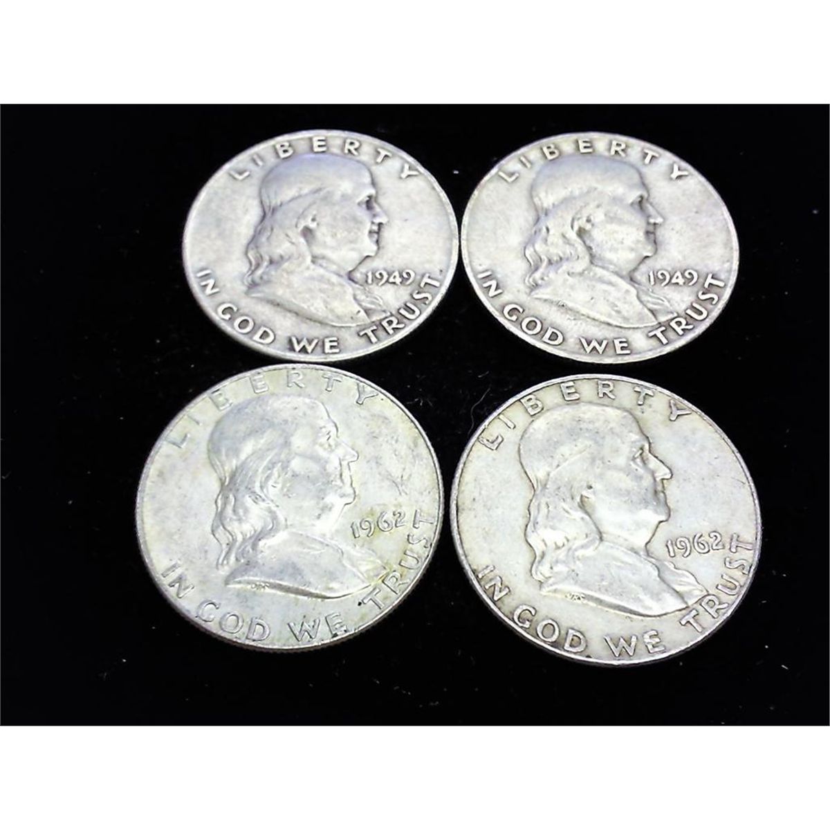 4 ASSORTED FRANKLIN HALF DOLLARS