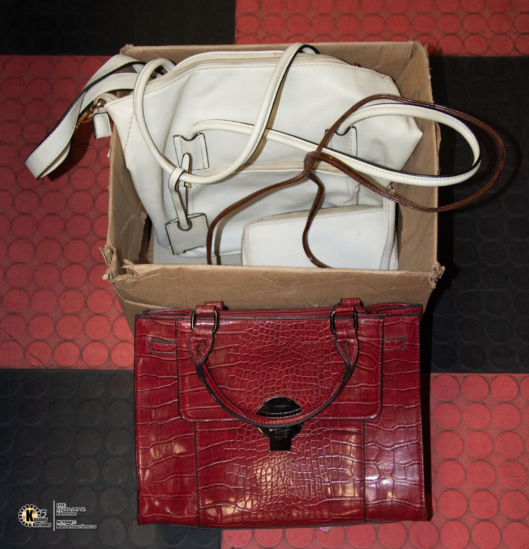WHITE PURSE, WHITE WALLET, RED FAUX LEATHER PURSE, BROWN FAUX LEATHER MINI PURSE/WALLET