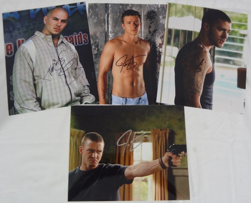 4 AUTOGRAPHED 8x10's - 3 Justin Timberlake, & 1 Pitbull