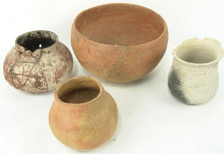 Prehistoric, Including a beautiful and large Casas Grandes redware bowl (glued, not restored), plus three Hohokam pieces including two redware ollas (one intact, one glued), and a great corrugated vase (as-found). Largest 5" x 8-1/2"
