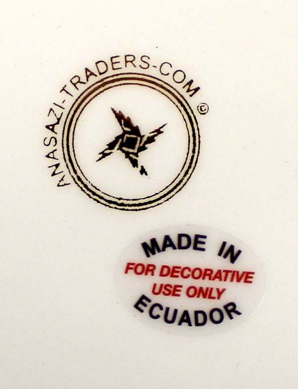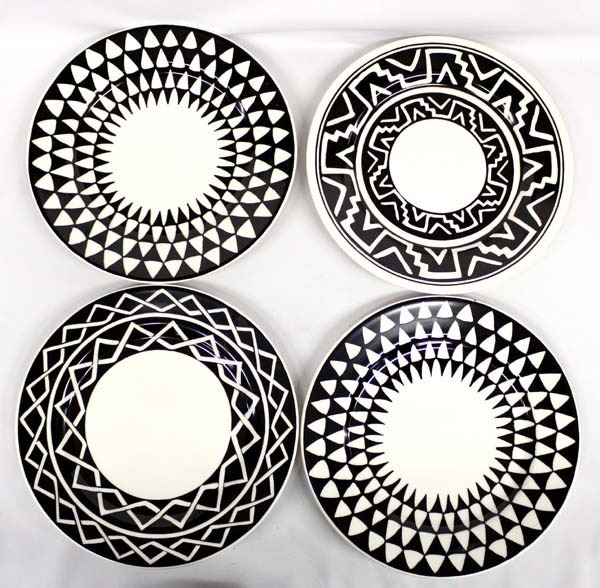 Set of 4 Anasazi Traders Mimbres Designed Black on White Ceramic Decorative Plates, made in Ecuador, measure 11''D, for decorative use only