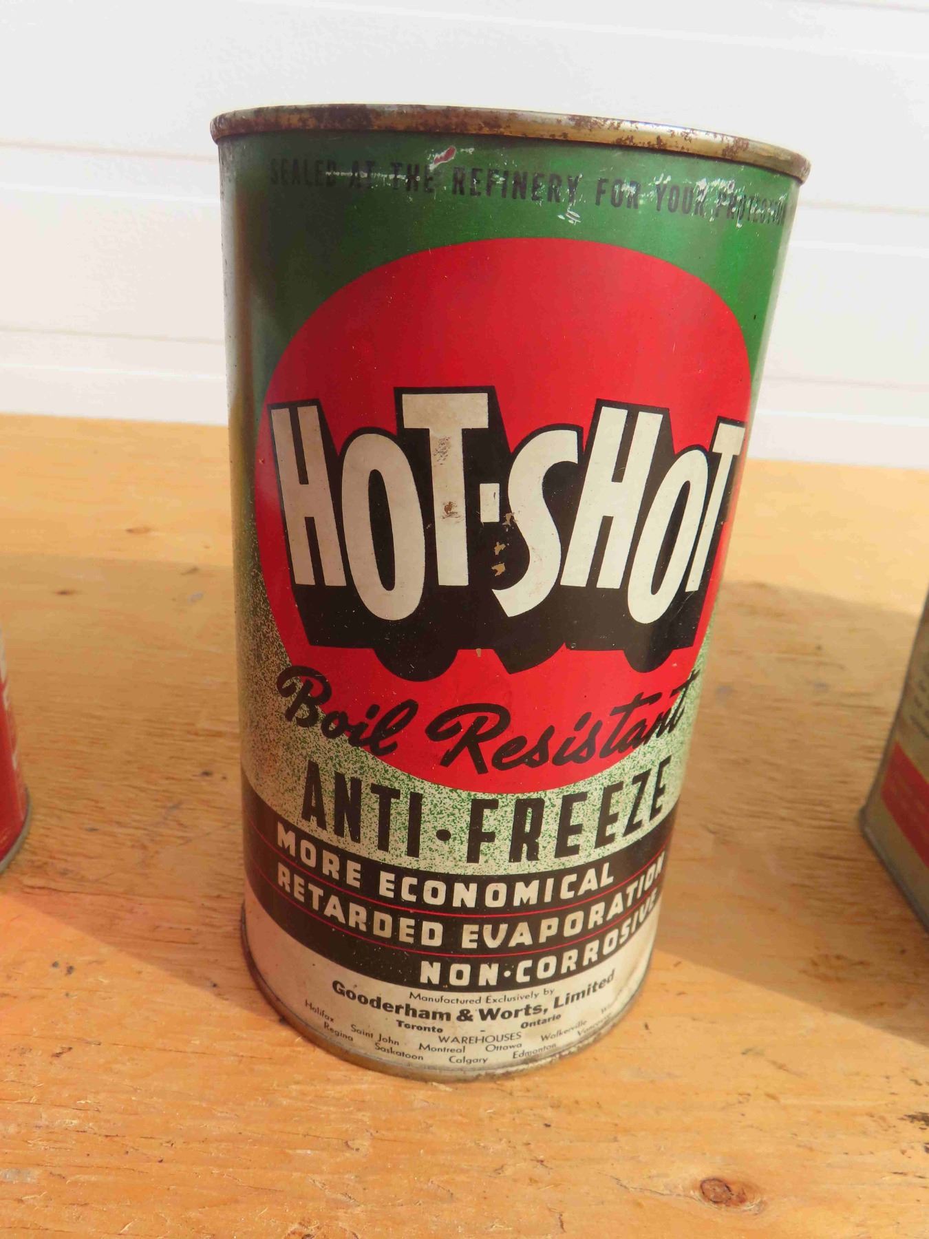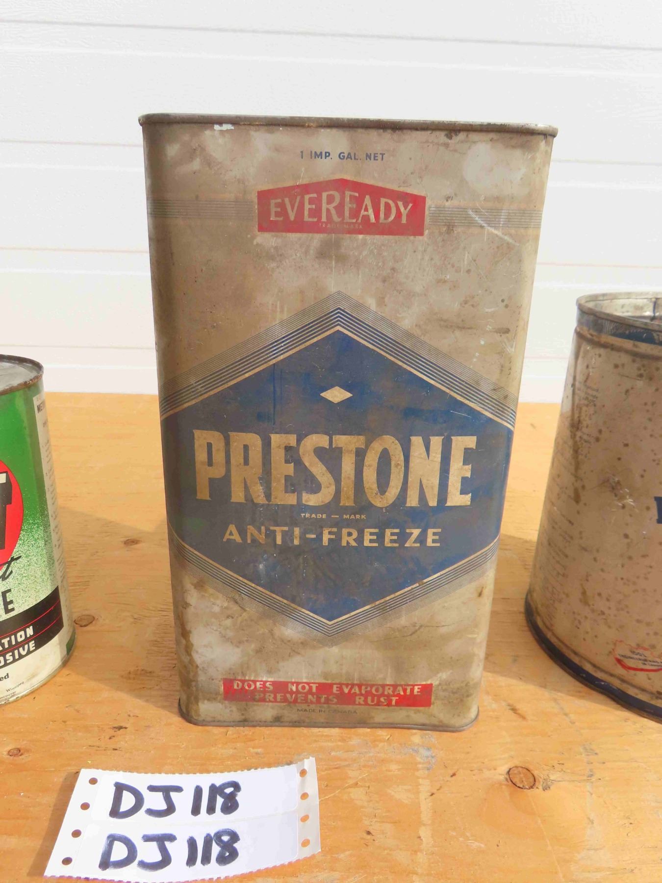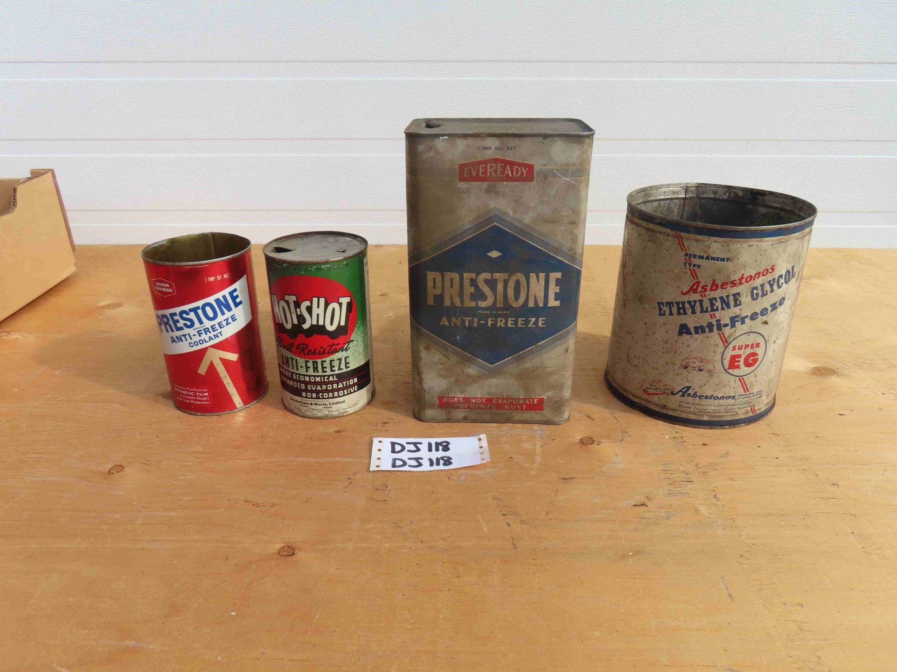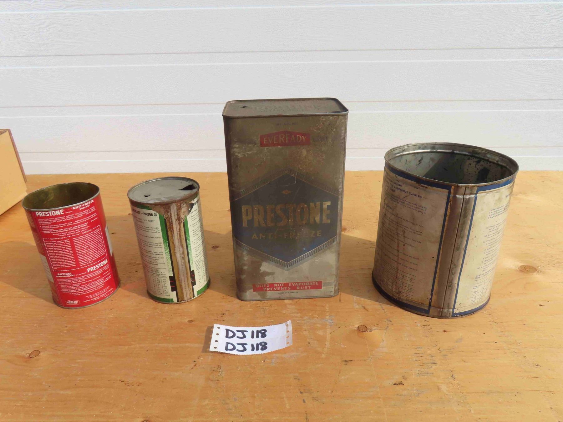 4 Antifreeze Tins - Hot Shot and Prestone 1 Imperial Quarts, Super EG Asbestos 1 Gal, Prestone 1 Gal