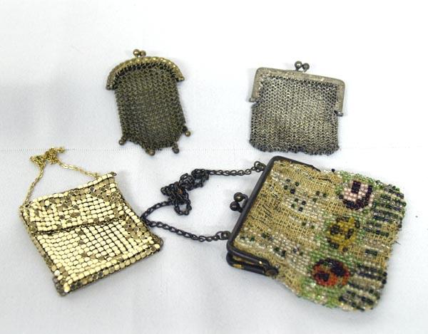 4 Antique Ladies' Coin Purses, 3 Mesh, 1 Beaded