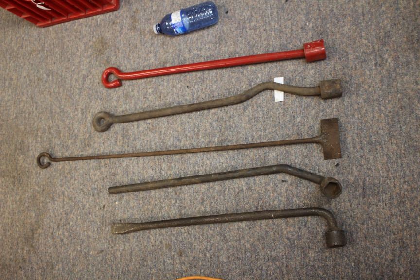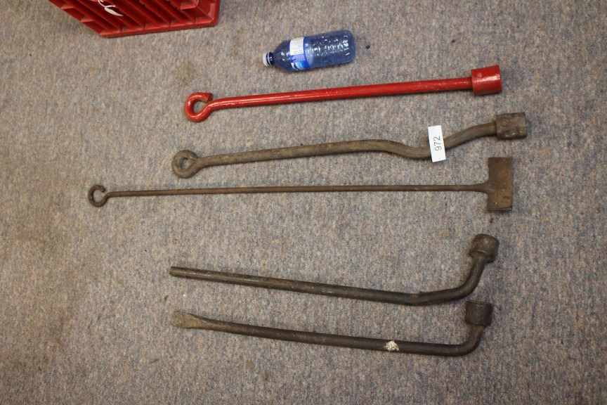 4- Antique Large Socket Wrenches, 1 Branding Iron