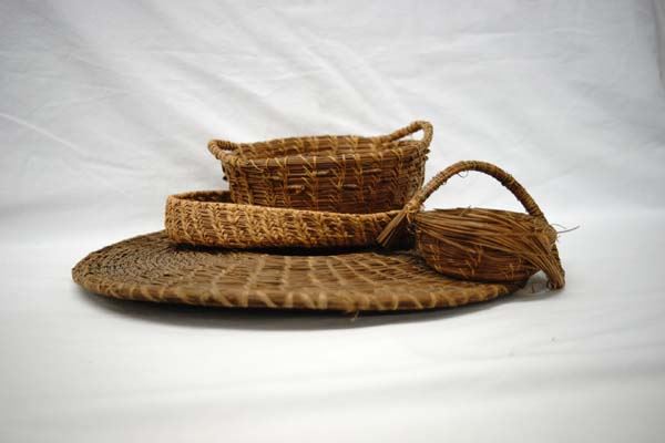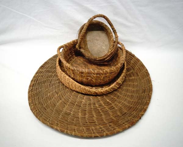 4 Antique Pine Needle Baskets, largest measures 14''D