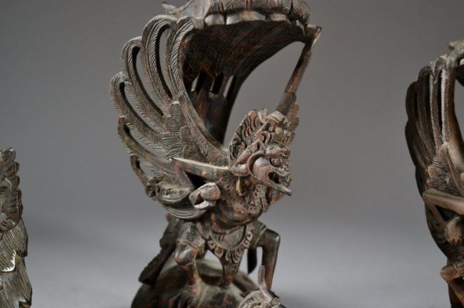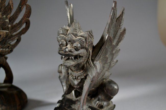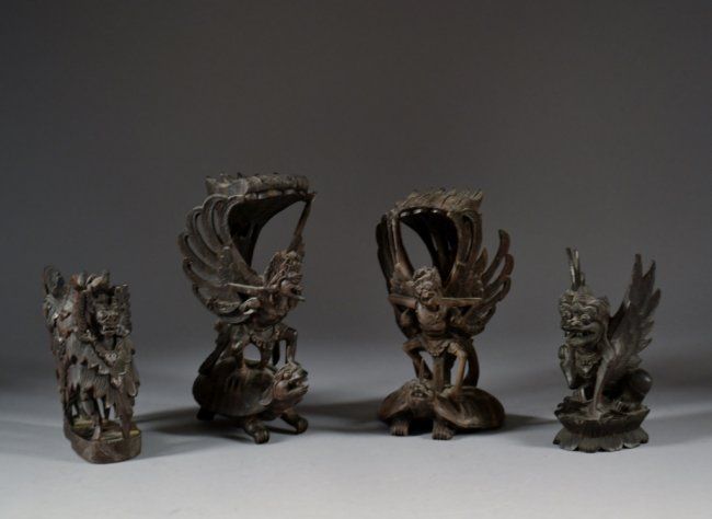 4 Asian Carved Wood Figures 6 1/4" to 8 1/4"