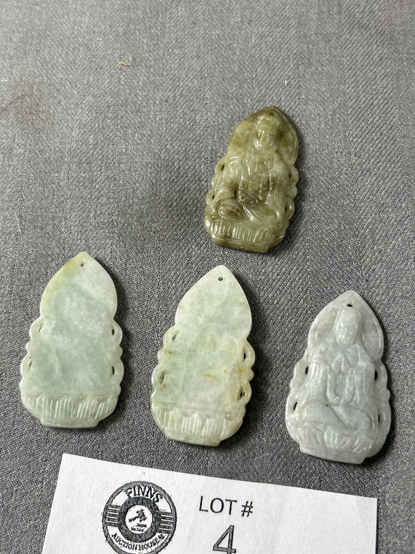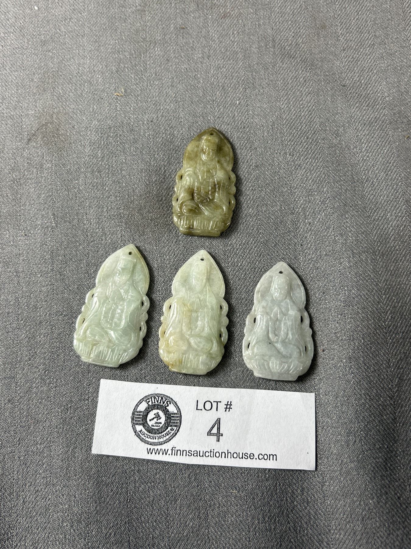 4 Asian Religious Jade Pendants. Each Approx.1 3/4"H