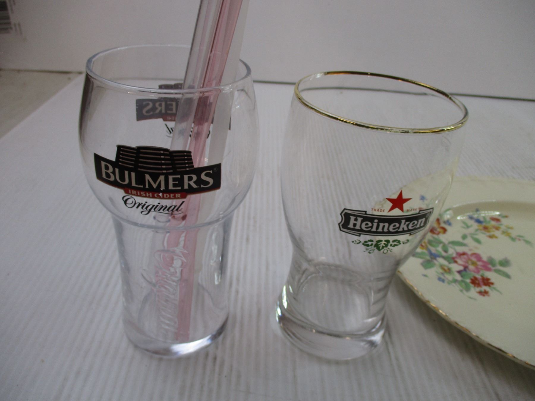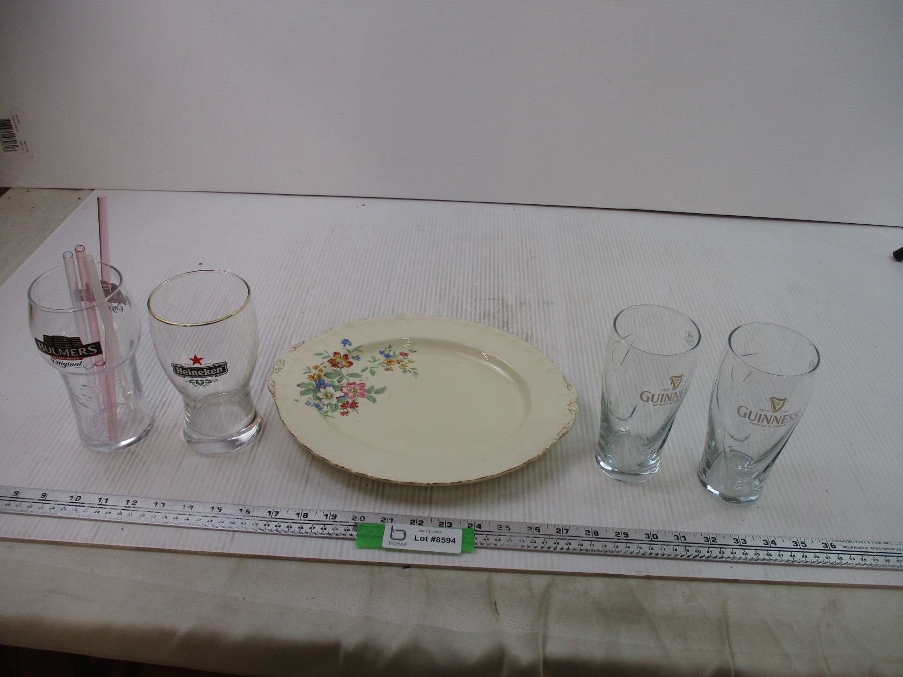 (4) Assorted Beer Glasses, Reusable Straws, + Platter