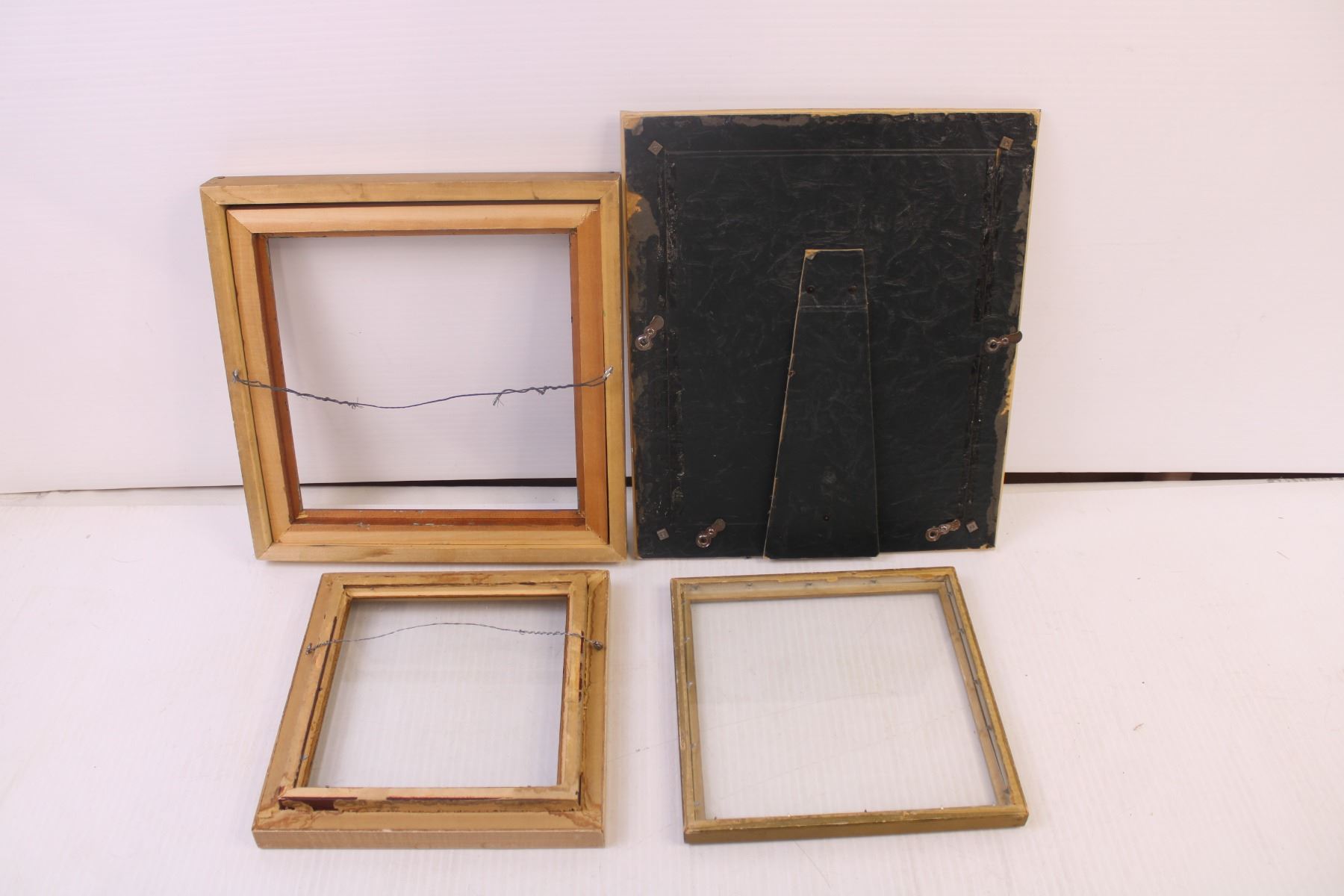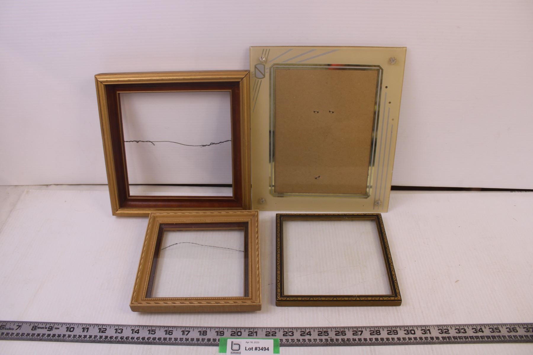 4 Assorted picture frames-1 glass/3 wooden (7.5x7.5) (8x8)(10.25x10.25) 10x12)