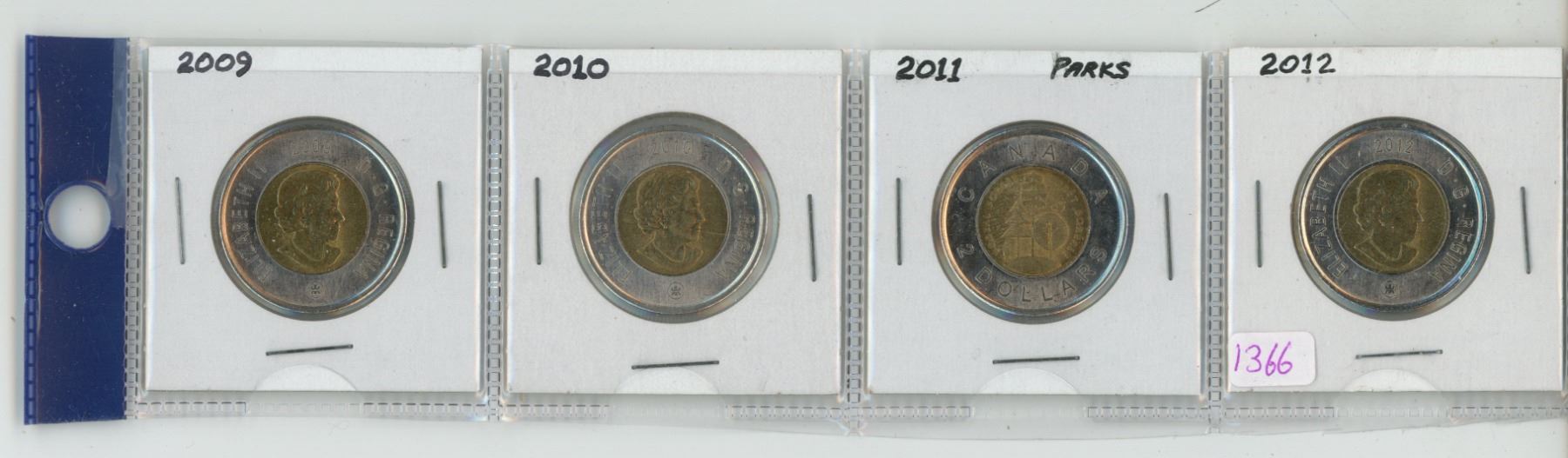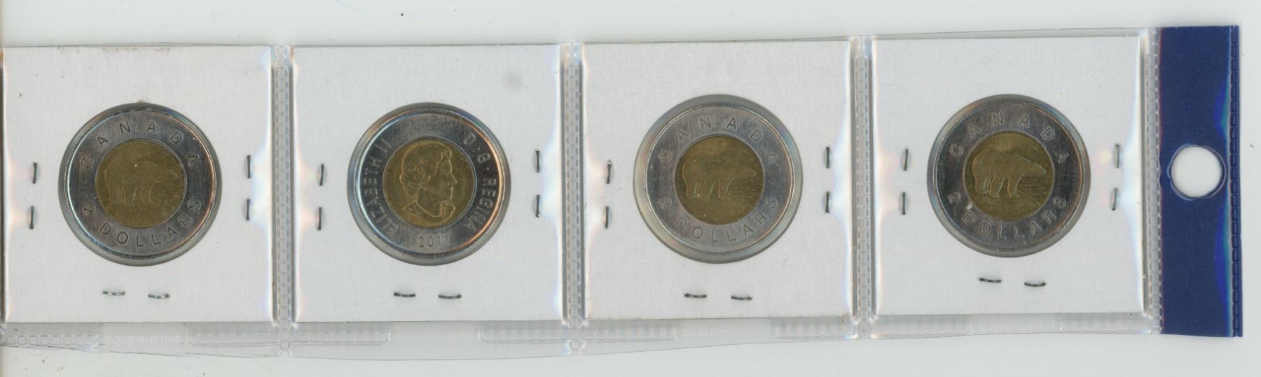 4 - Asst Canadian 2 dollar toonies - 2009-2012