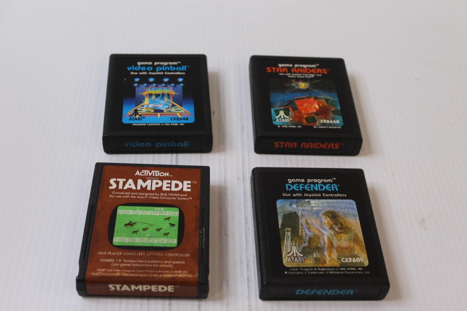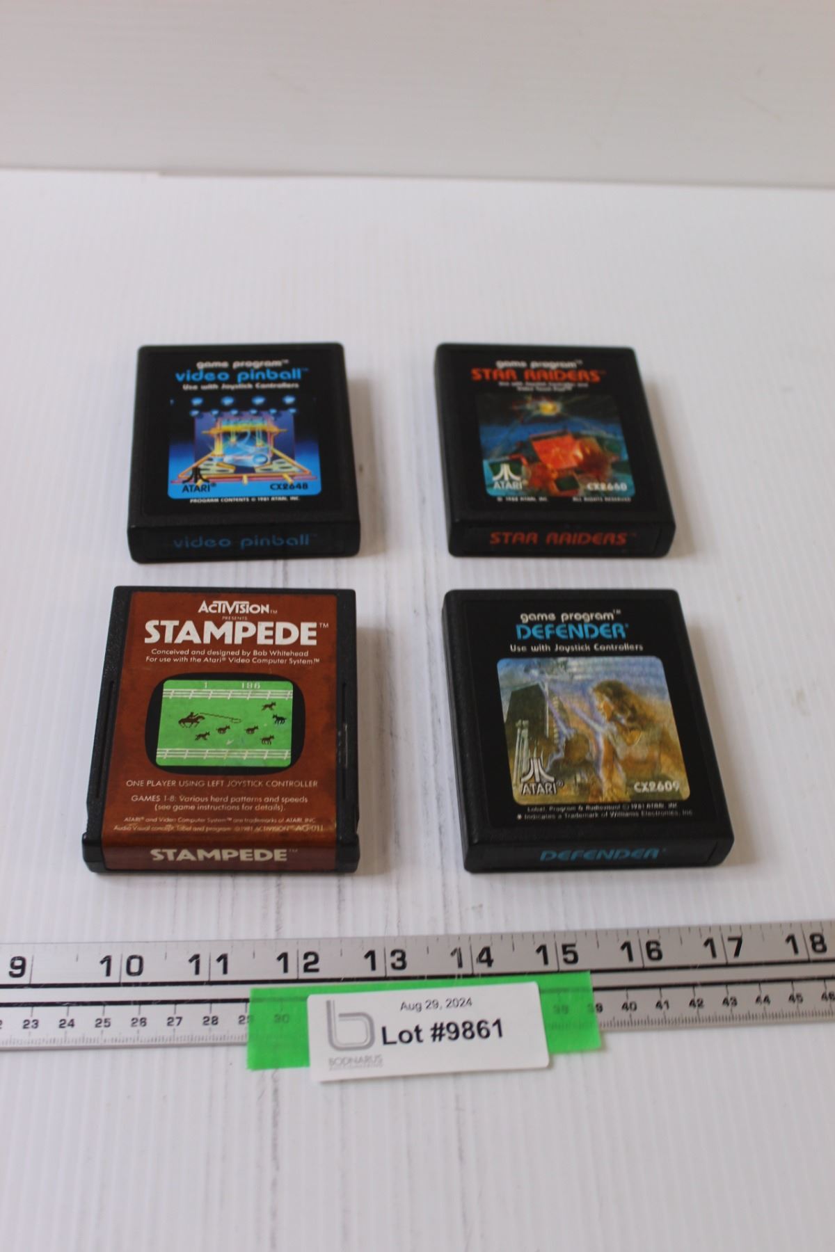 (4) Atari Video Game: Video Pinball, Star Raiders, Stampede, Defender
