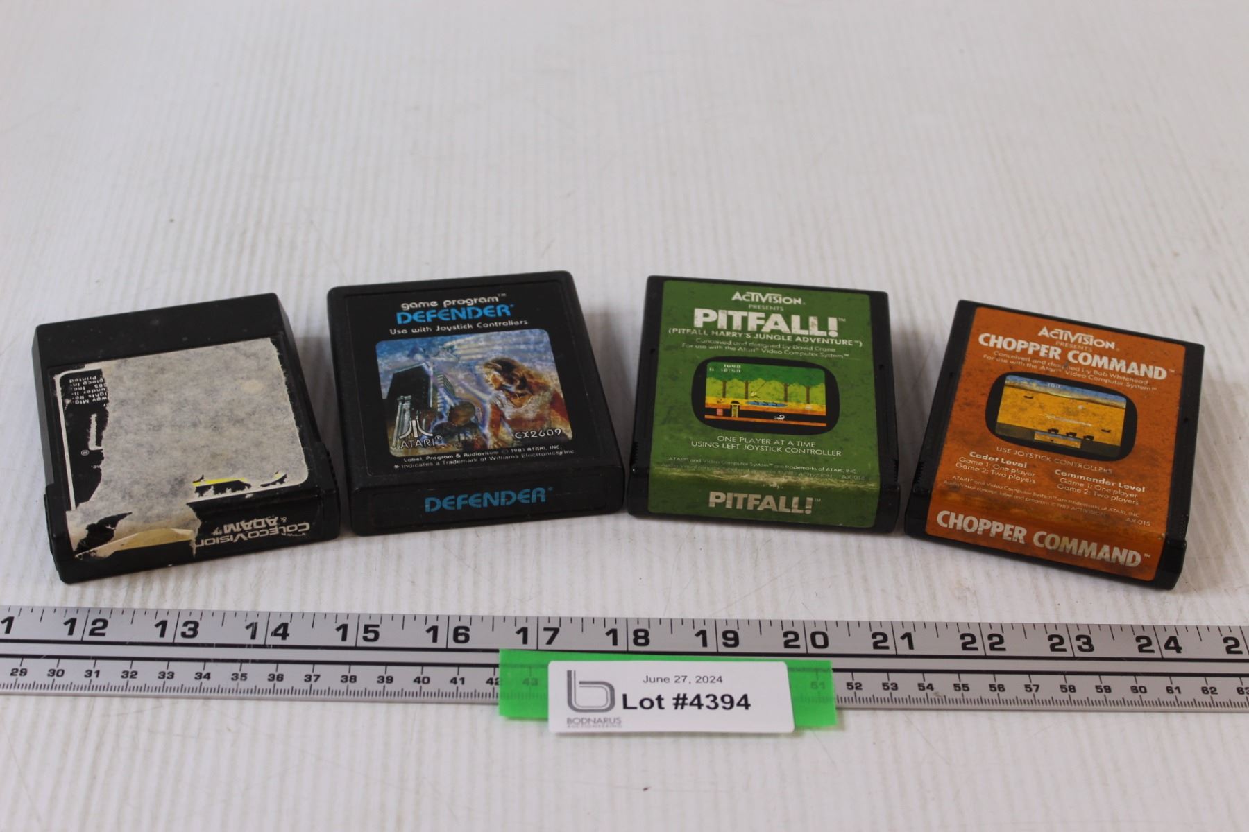 (4) Atari Video Games: Pitfall, Defender, Chopper Command, Coleco Vision & Adam