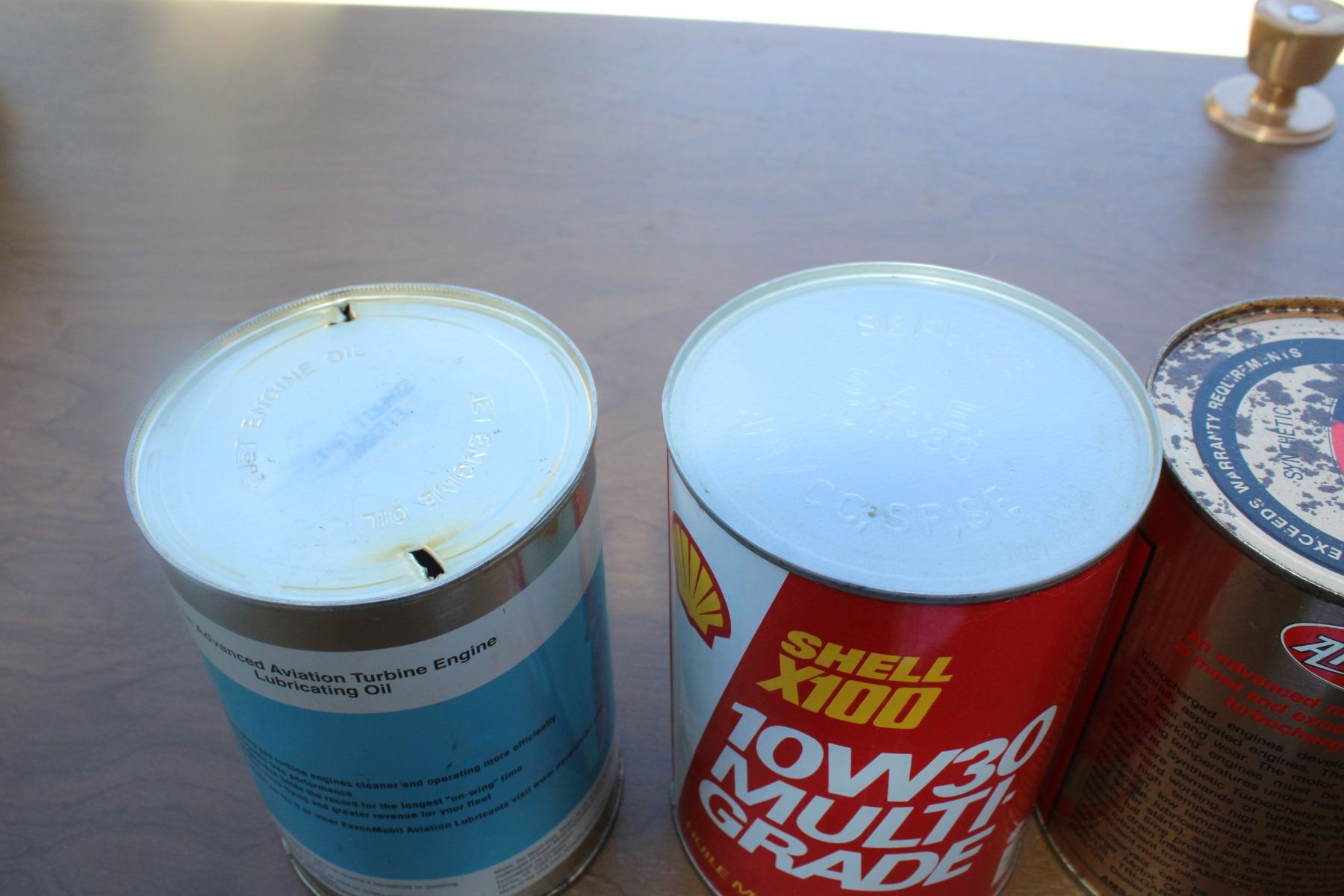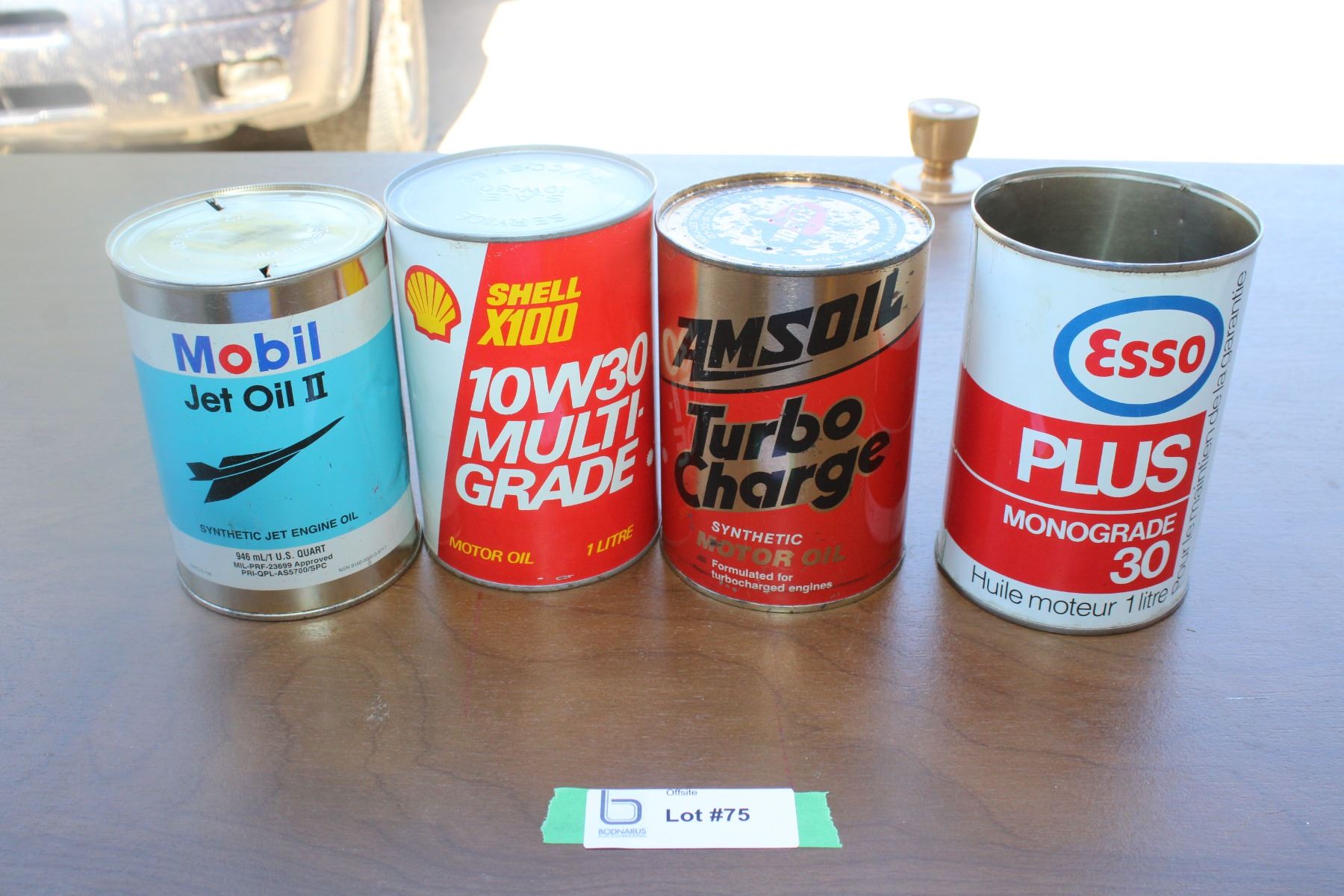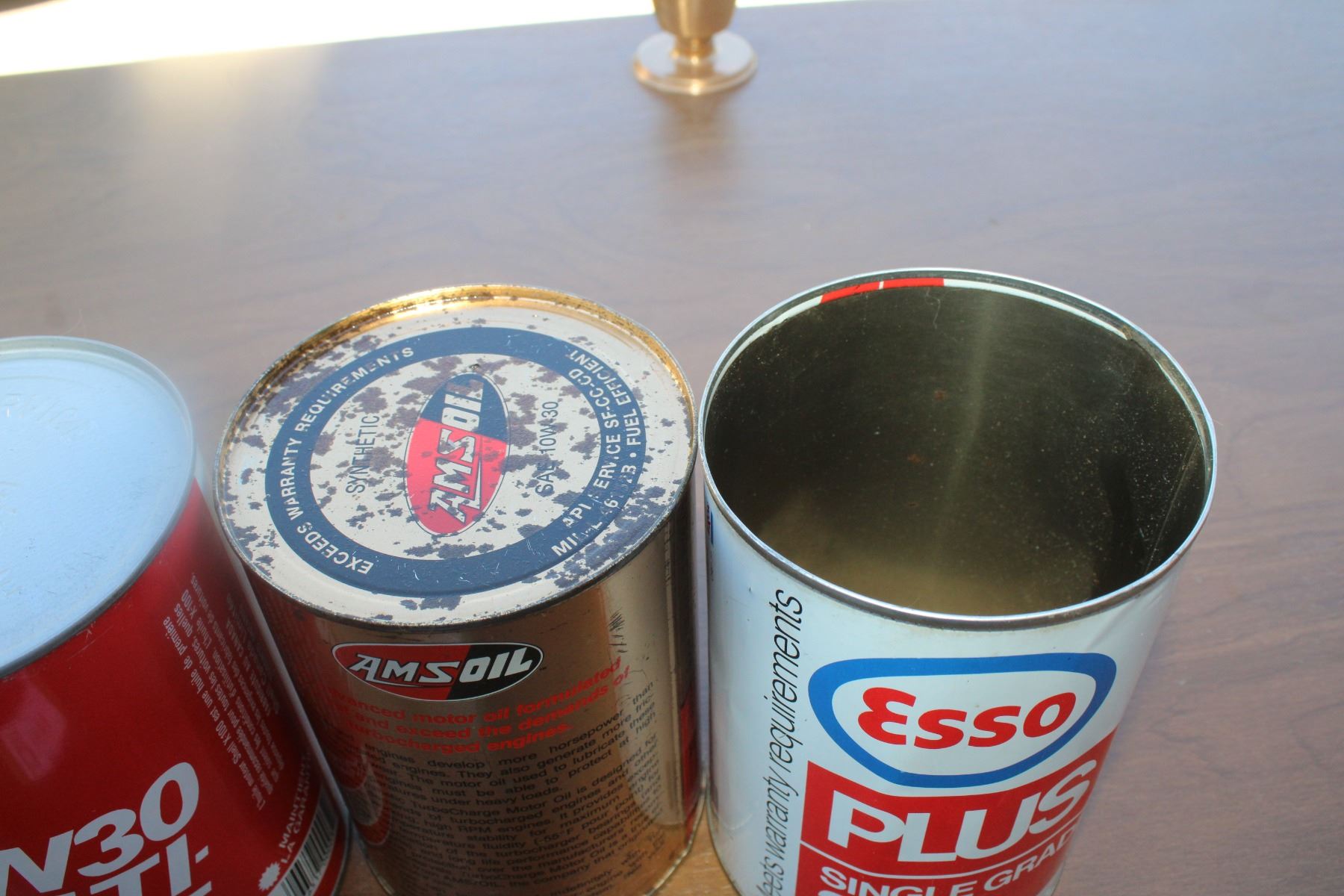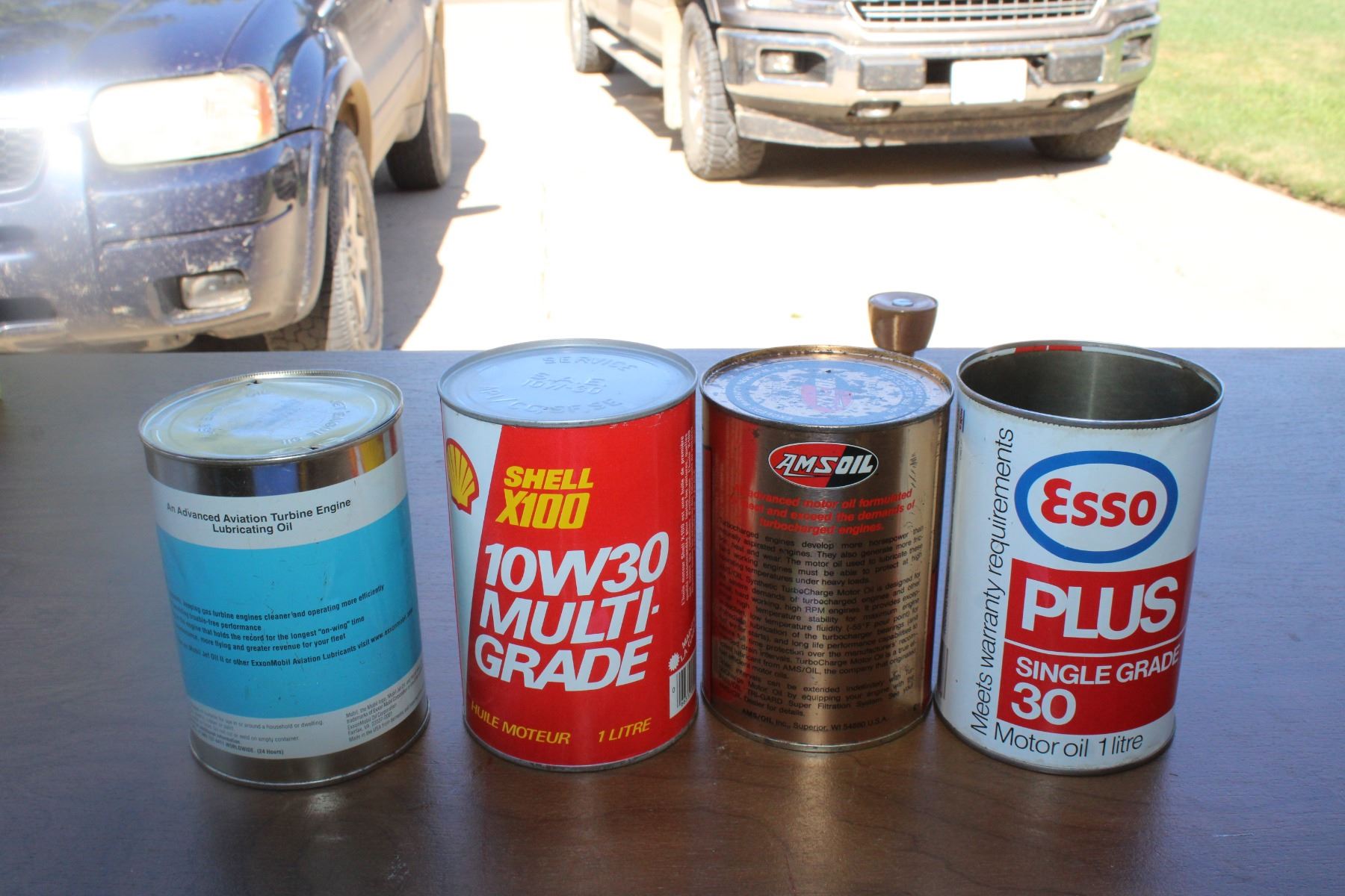 (4) Auto fluid cans - Esso, AMsoil, Shell, Mobil - 1 Litre