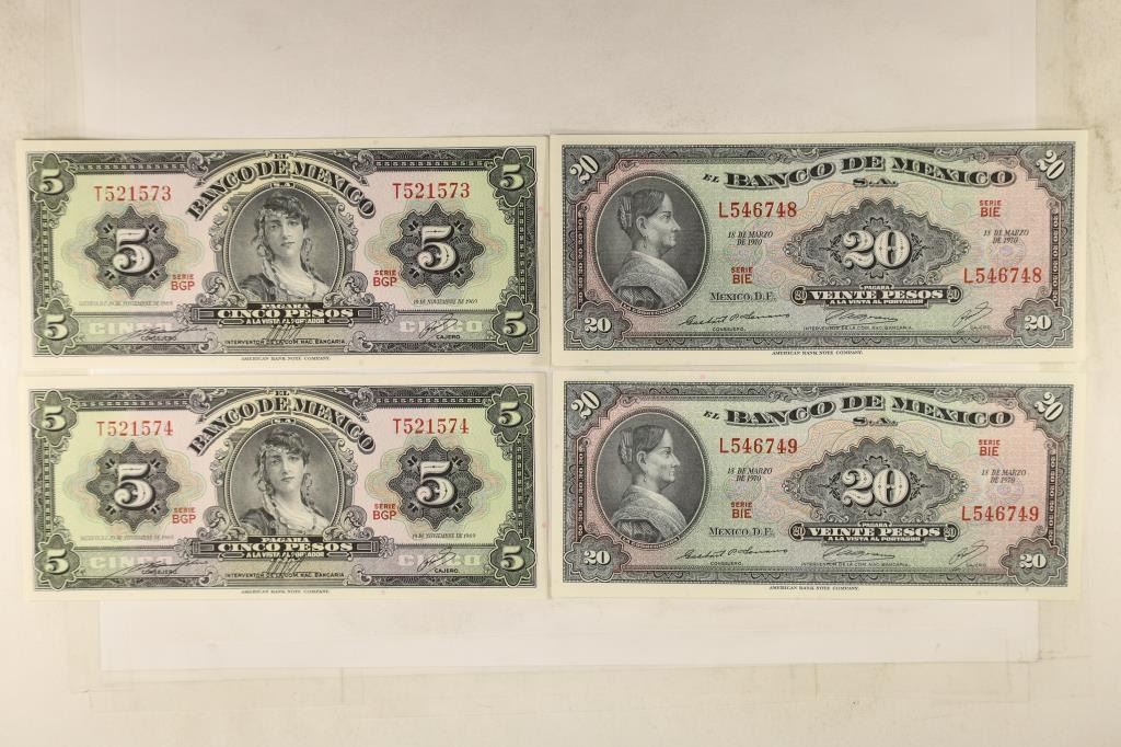 & 2-1970 20 PESOS, BOTH SETS ARE CONSECUTIVE SERIAL NUMBERS