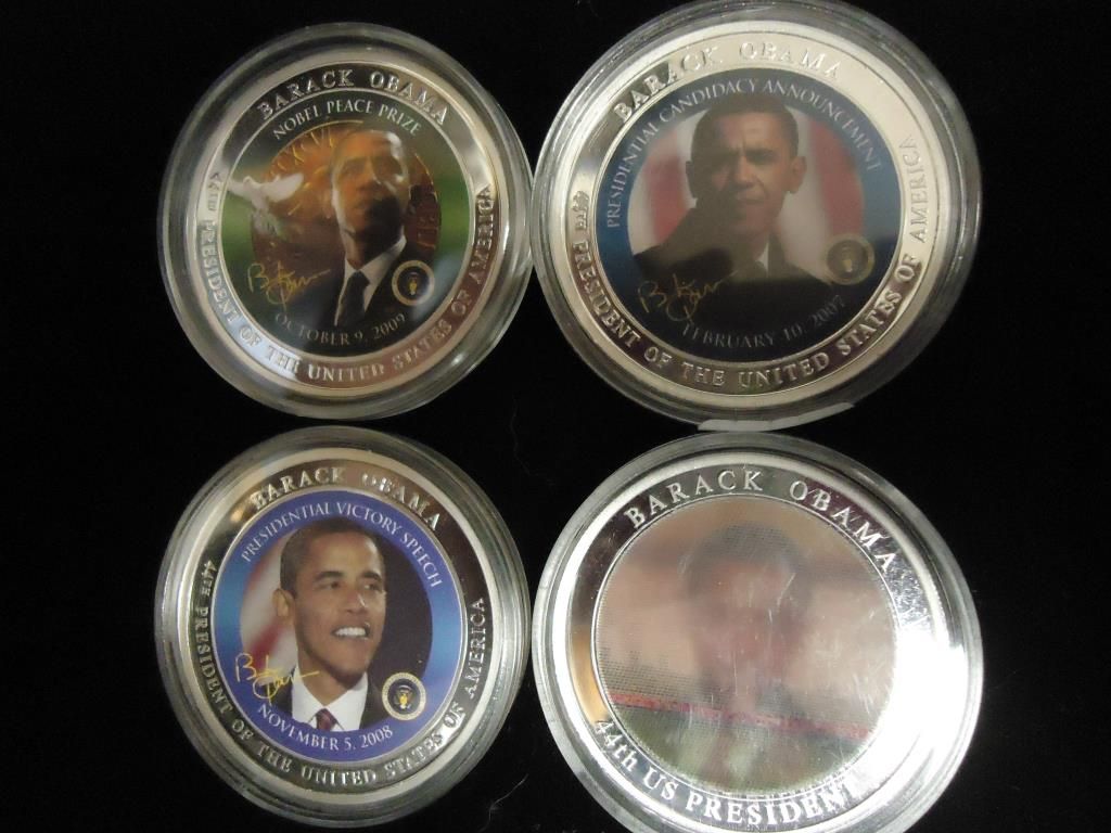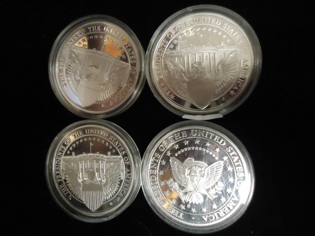 ALL TOKENS SILVER IN COLOR AND SILVER DOLLAR SIZE, 1 TOKEN IS HOLOGRAPHIC