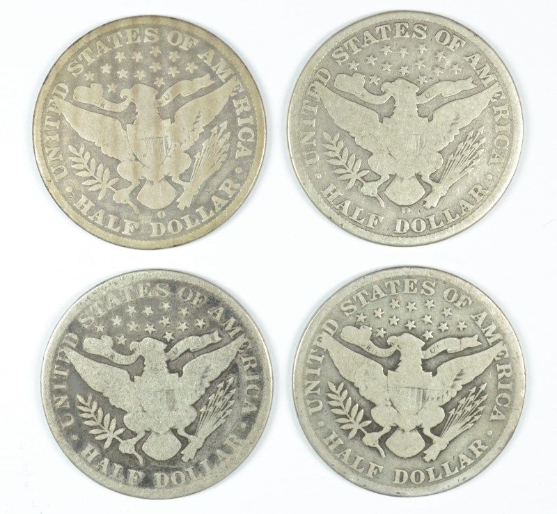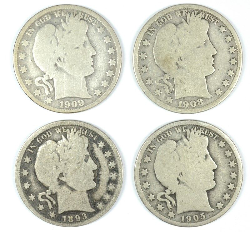 (4) BARBER HALF DOLLARS (93, 05, 08-D, 09-O)