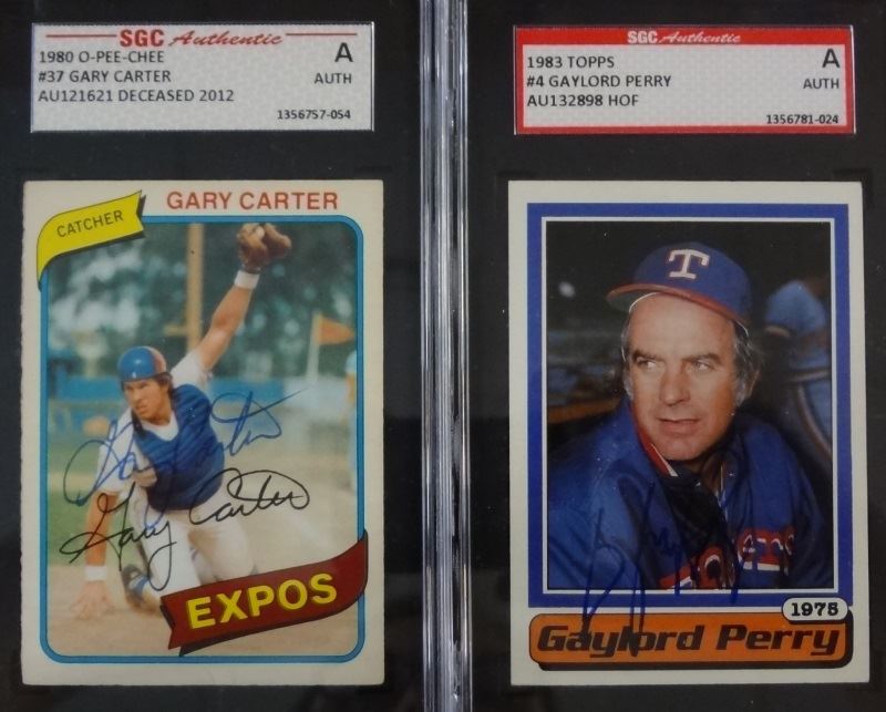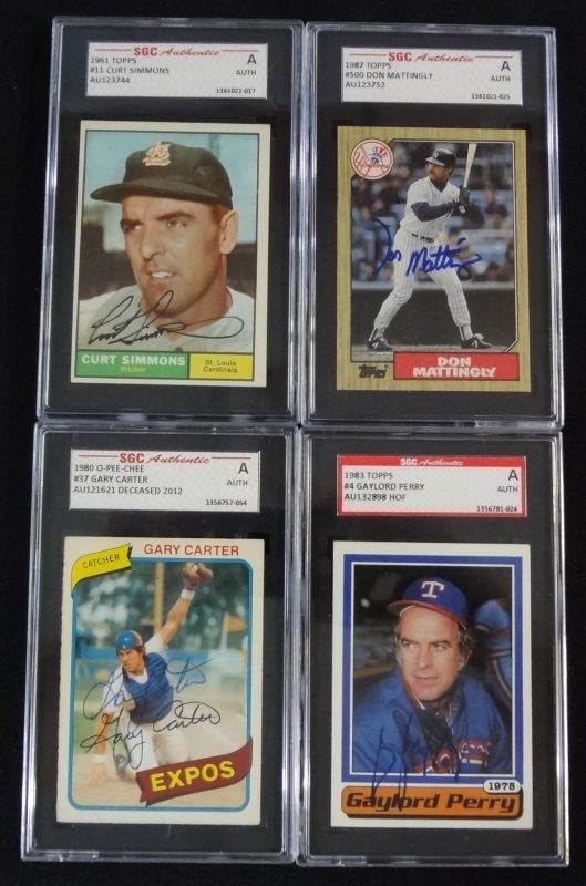 4 - BASEBALL AUTO. CARDS, ALL SGC AUTHENTIC, MATTINGLY, CARTER, PERRY & SIMMONS