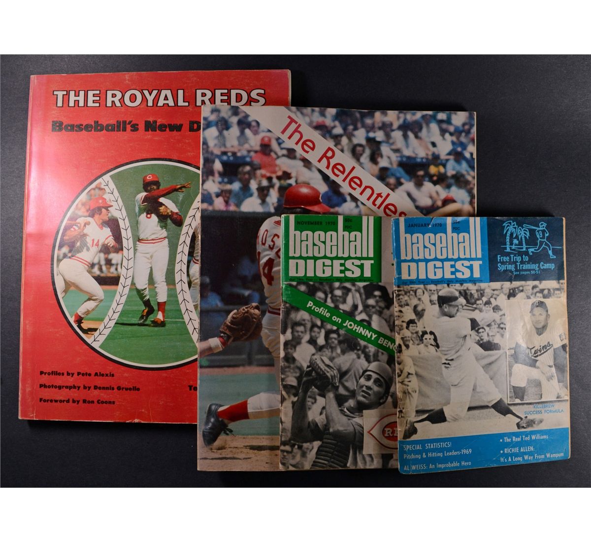 RECEIVE THE ROYAL REDS DYNASTY, THE RELENTLESS REDS, 2 - BASEBALL DIGEST 1970'S. EST 20.00-30.00