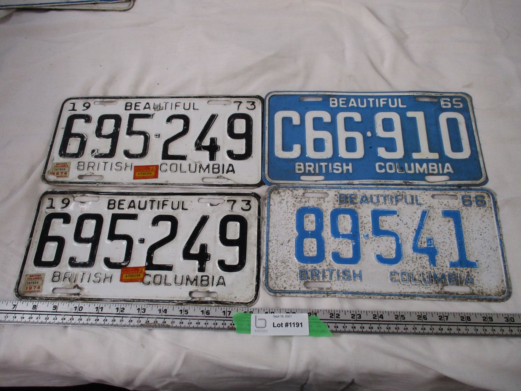 (4) BC License plates 1965,66 +1973