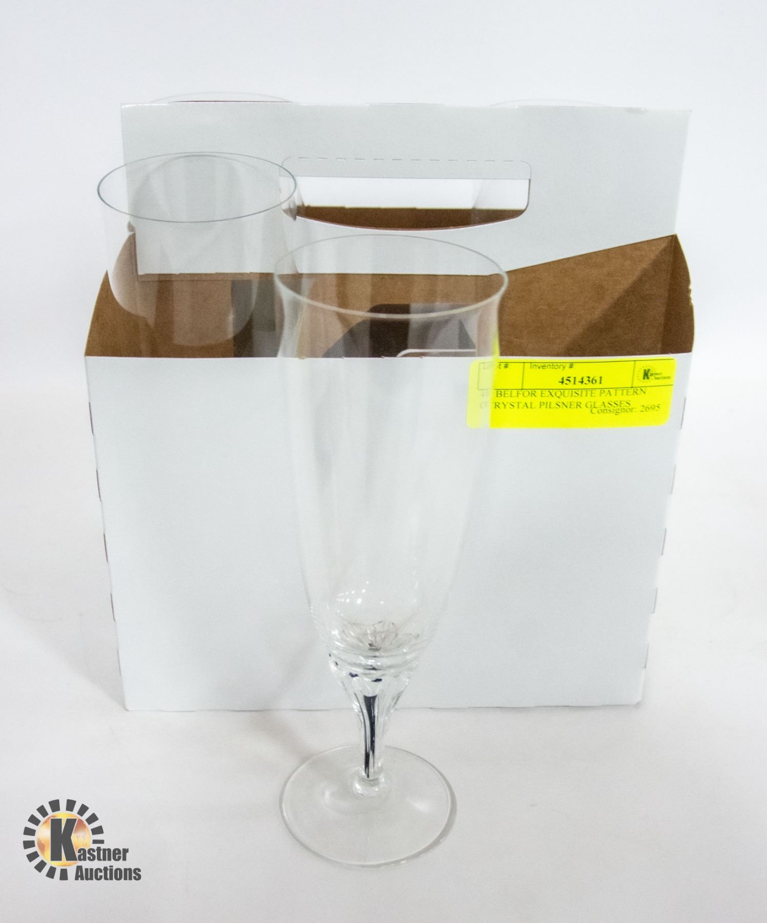 4 BELFOR EXQUISITE PATTERN CRYSTAL PILSNER GLASSES