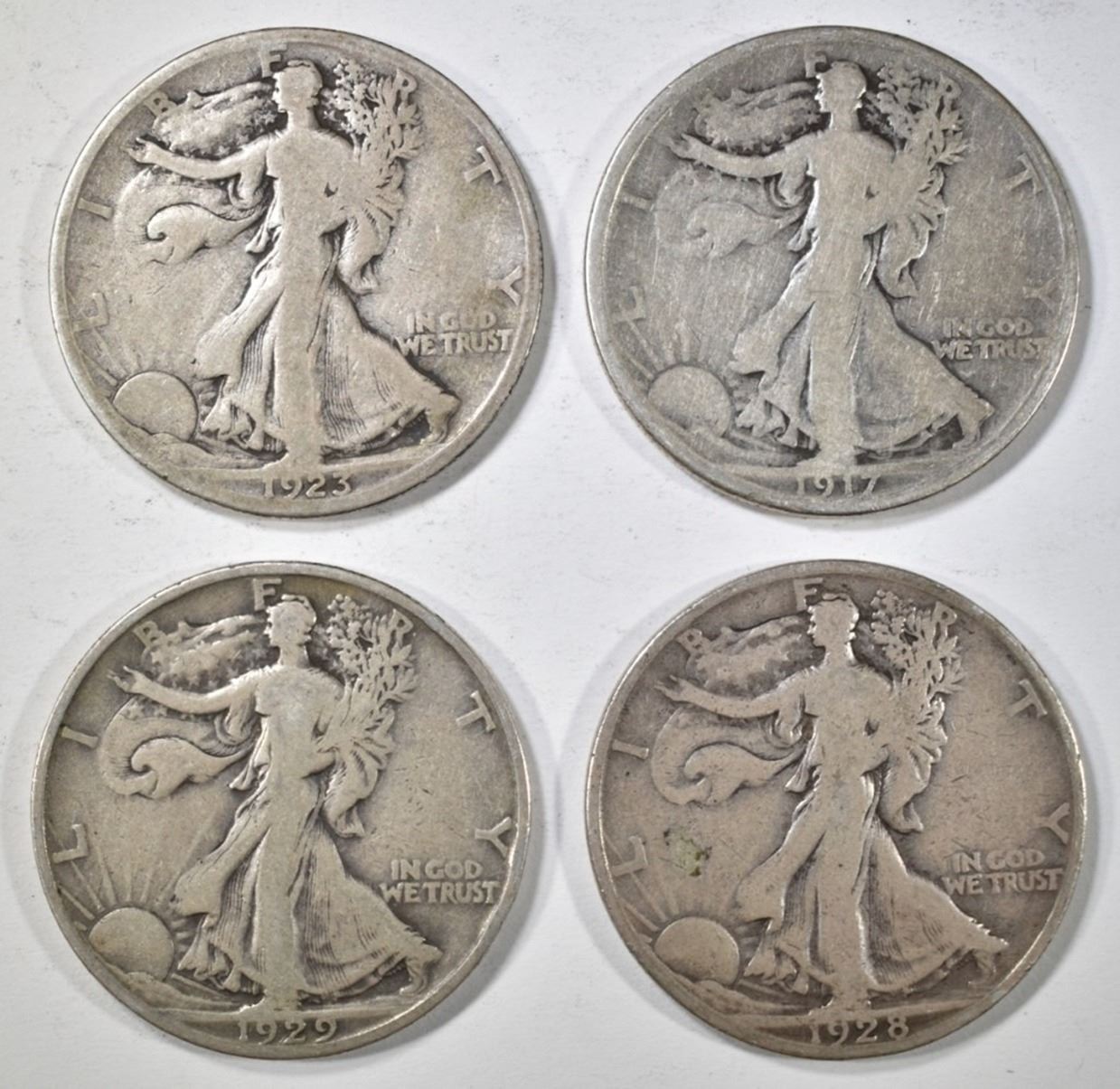 1917-S GOOD, 1923-S VG, 1928-S VG & 1929-D VG ESTIMATE $120 - $140. Location 24