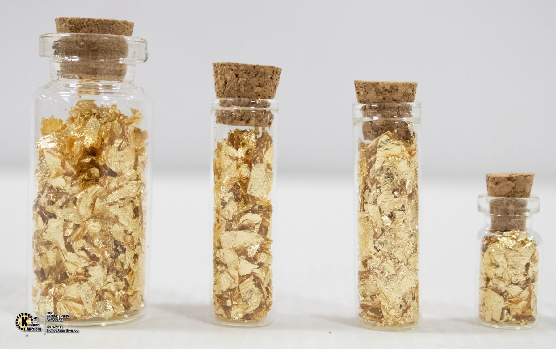 4 BOTTLES FILLED WITH GOLD FOIL FLAKES
