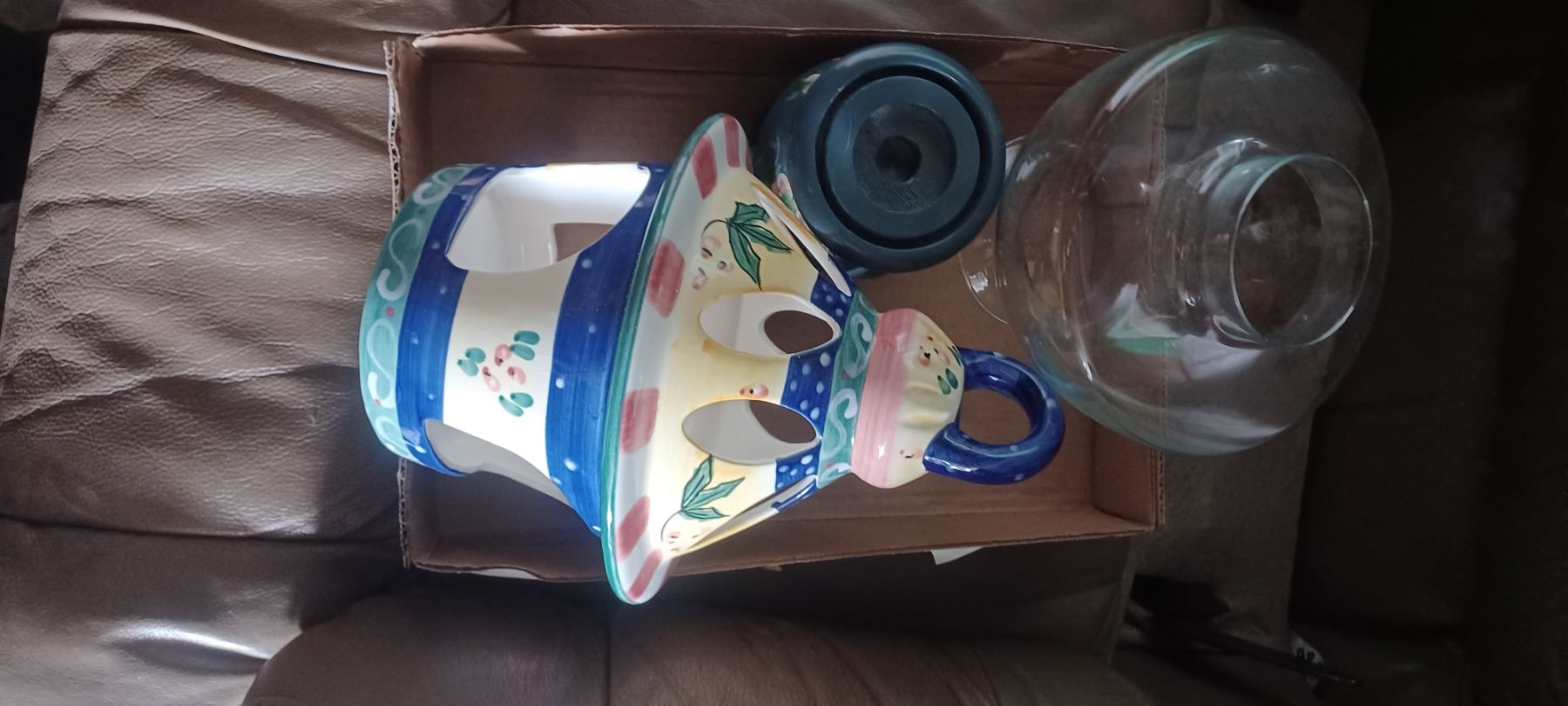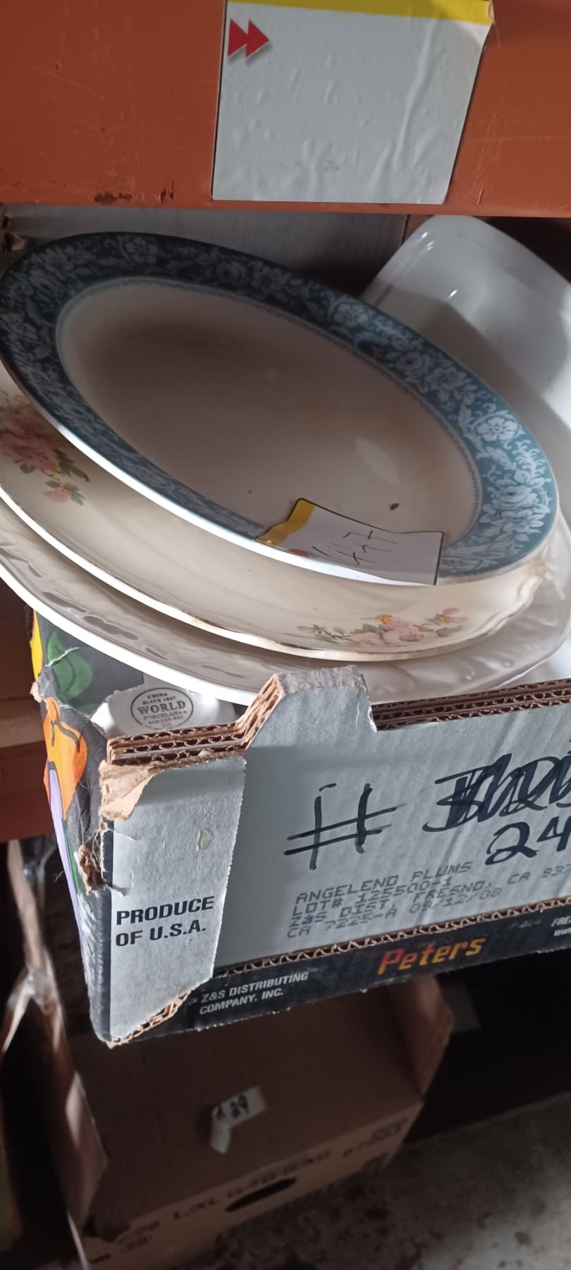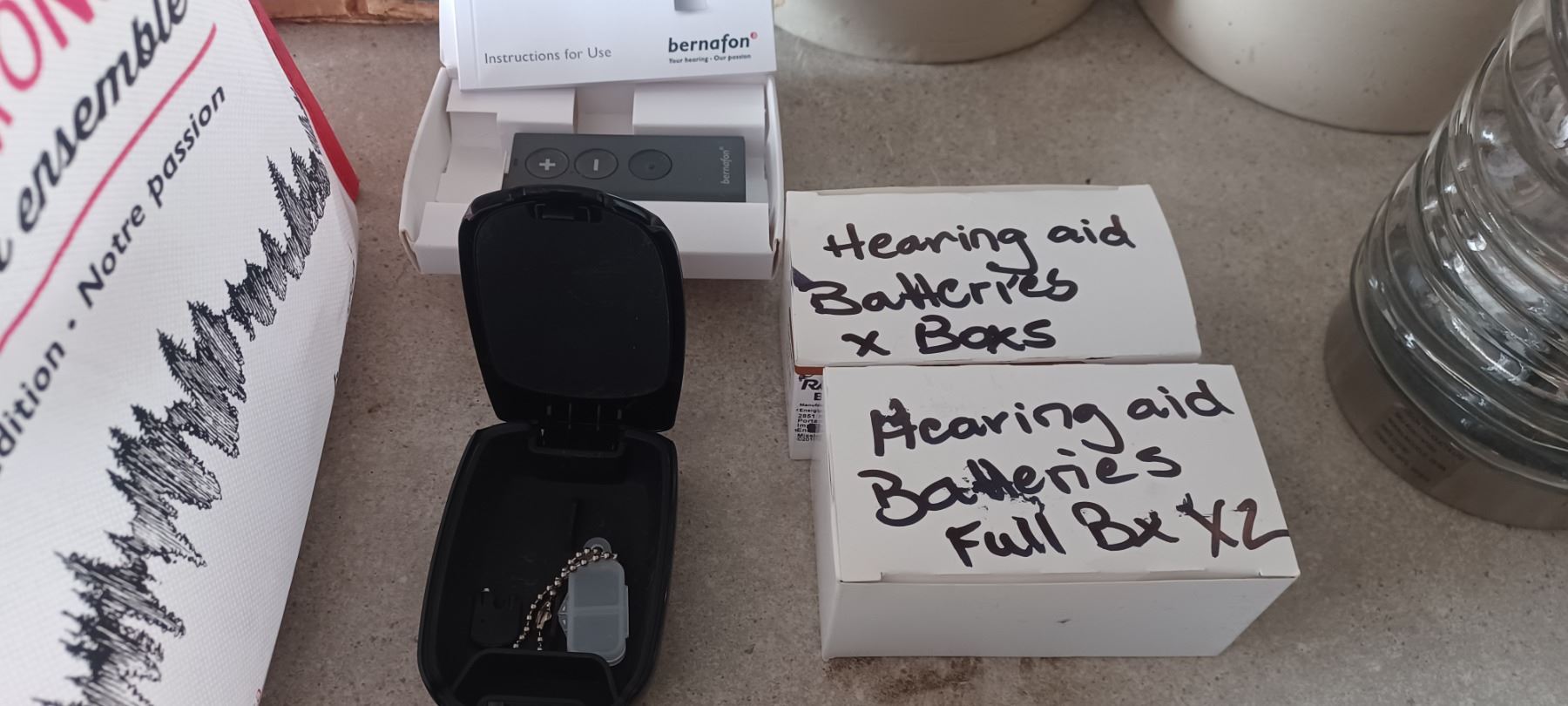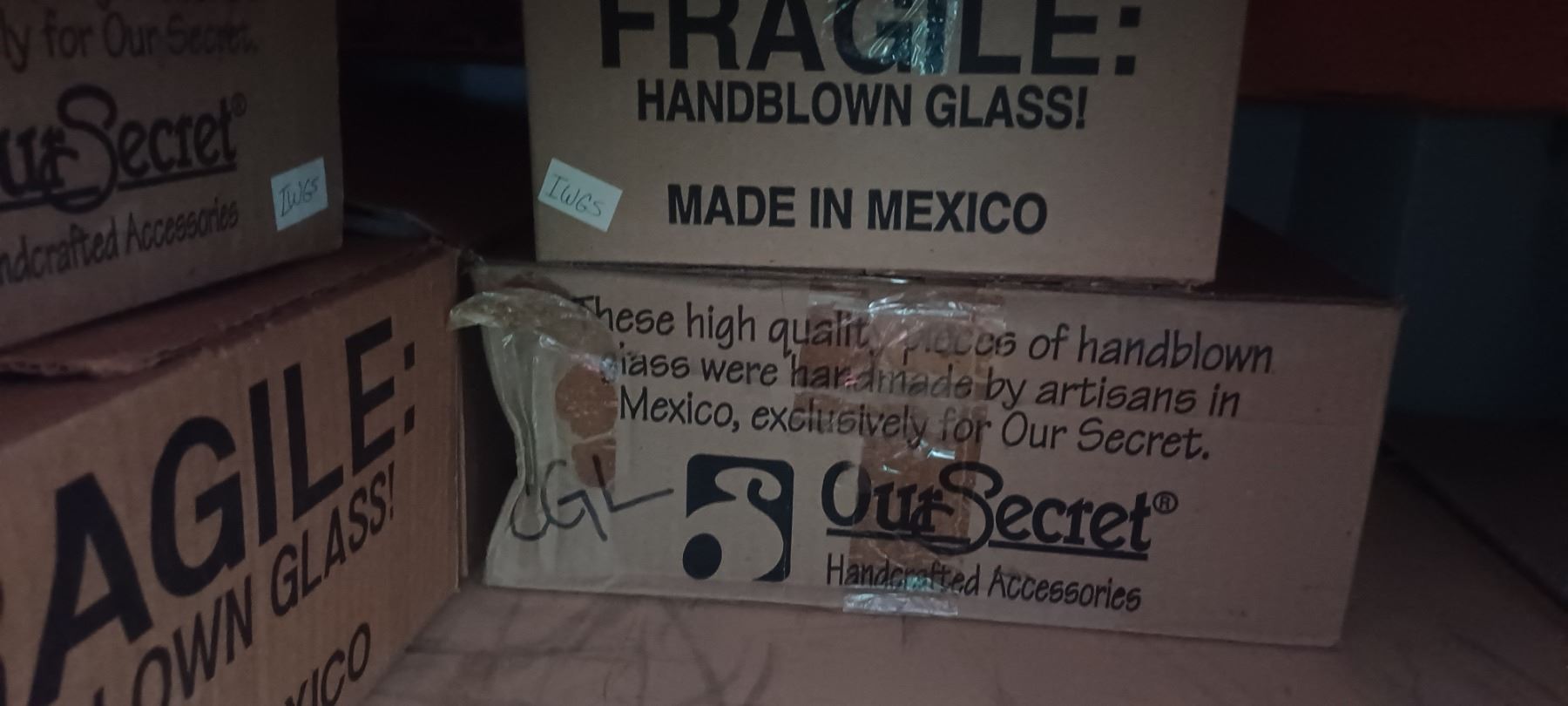 4 BOXES OF BLOWN GLASSWARE, DISHWARE AND RAYVAC HEARING AID BATTERIES