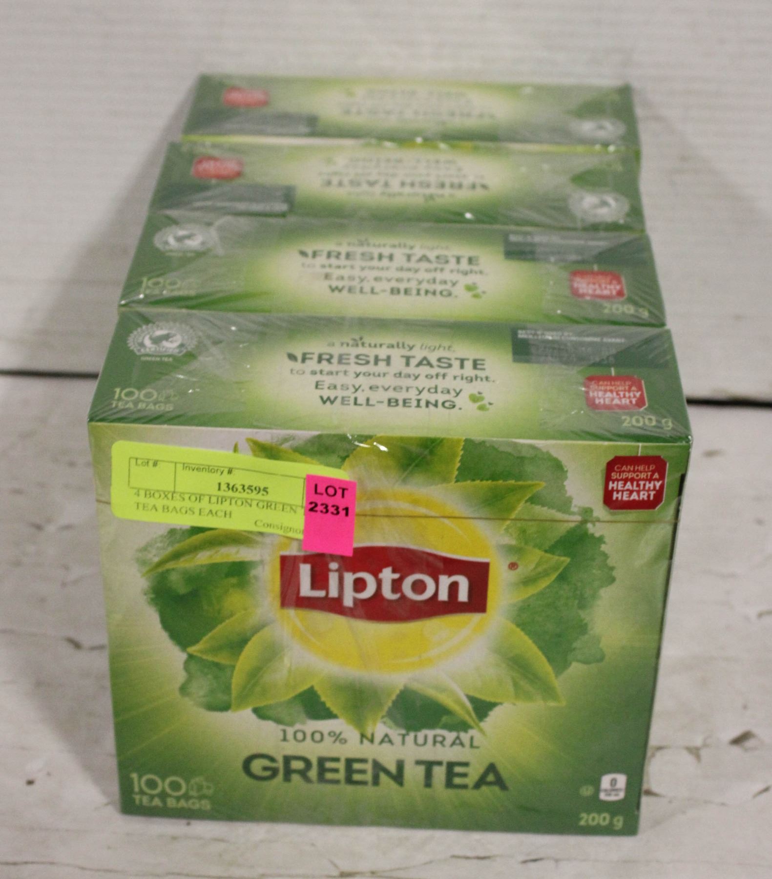 4 BOXES OF LIPTON GREEN TEA, 100 TEA BAGS EACH