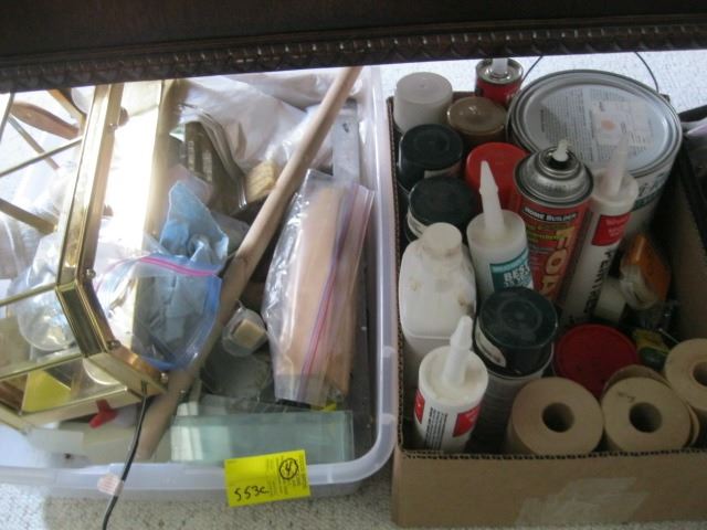 4 BOXES OF MISC SPRAY CANS, TOOLS AND WIRES
