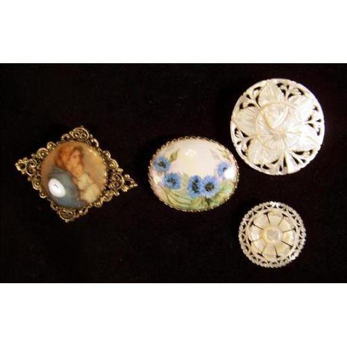 4 BROACHES (2 LOOK LIKE MOTHER OF PEARL)