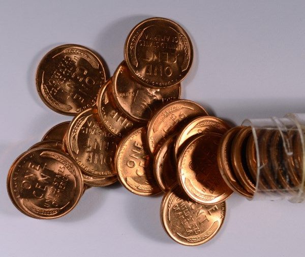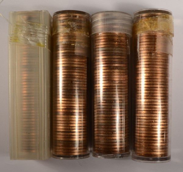 ( 4 ) BU LINCOLN WHEAT CENT ROLLS: 1953-D, 54- D AND S, AND 1955-D