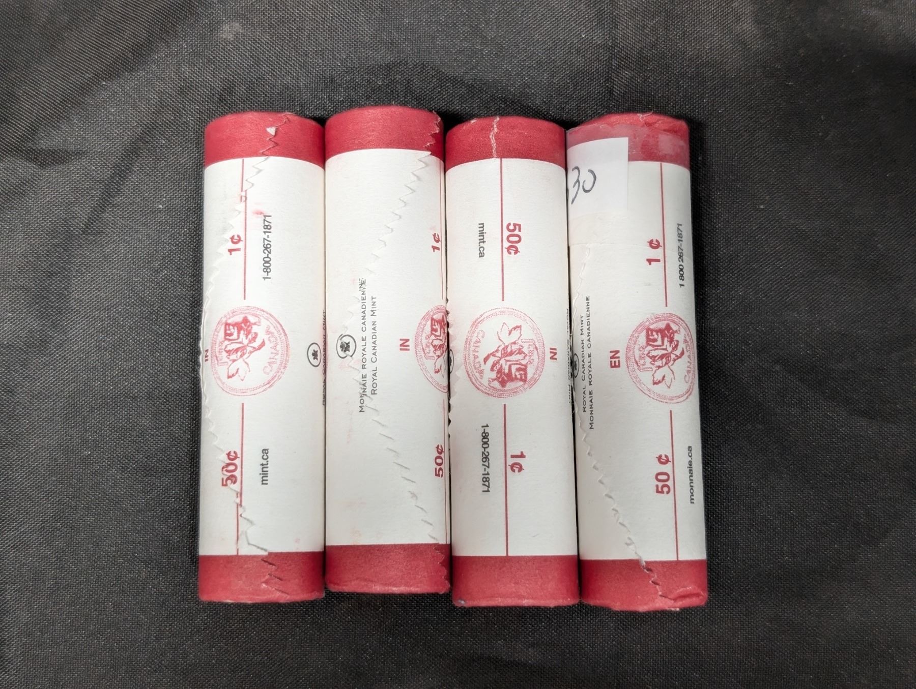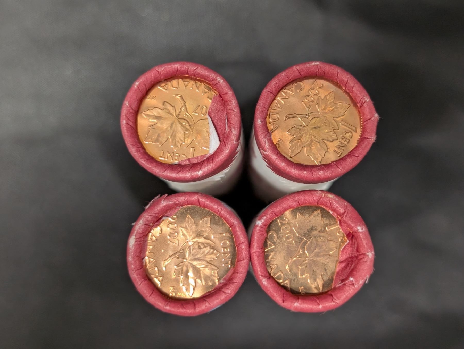 (4) BU Rolls 1 Cent Canadian 2007 Magnetic
