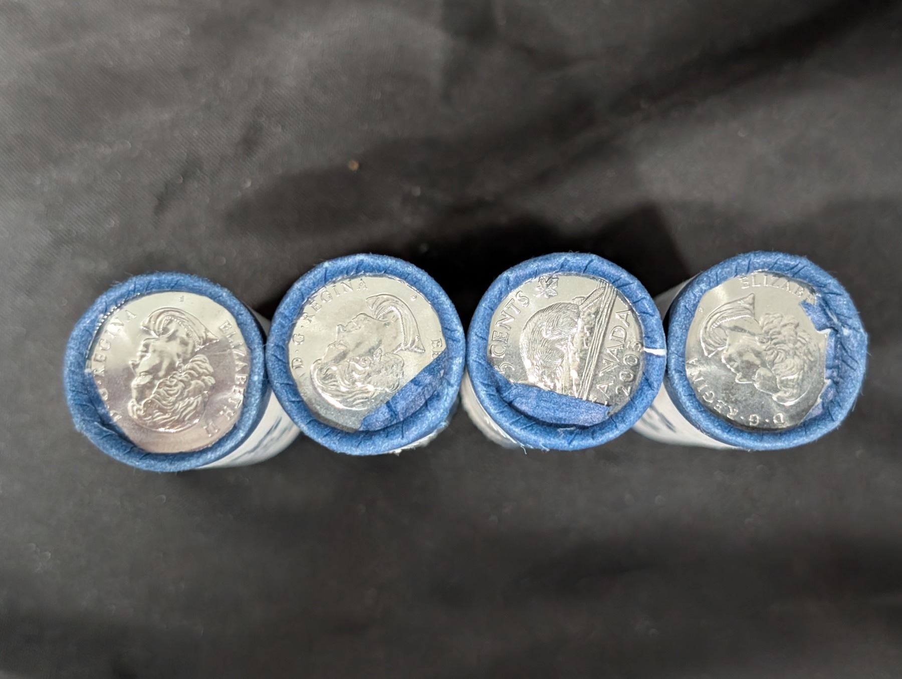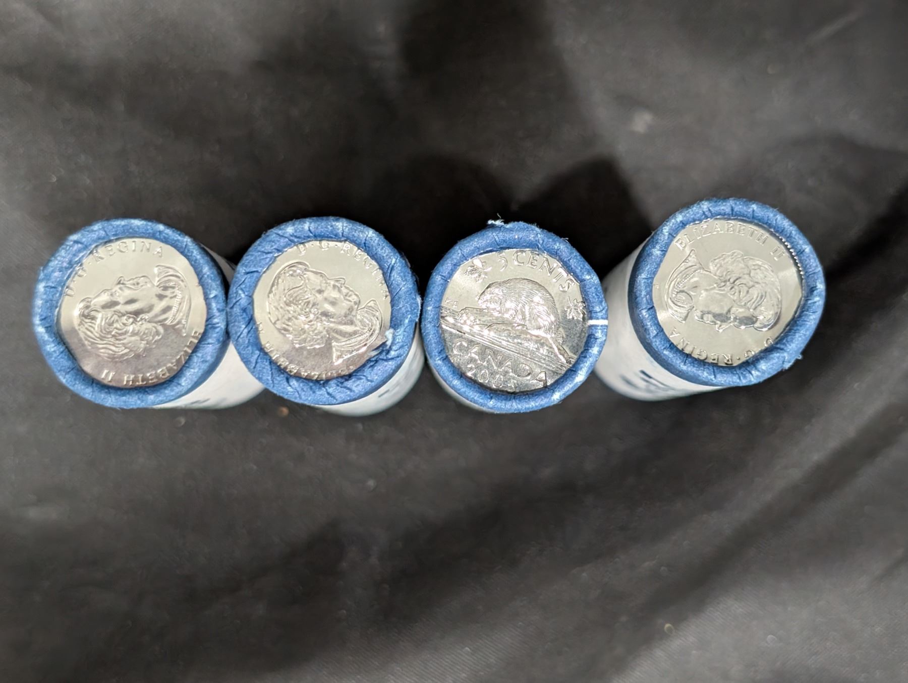 (4) BU Rolls 5 Cents Canadian 2005 Beaver