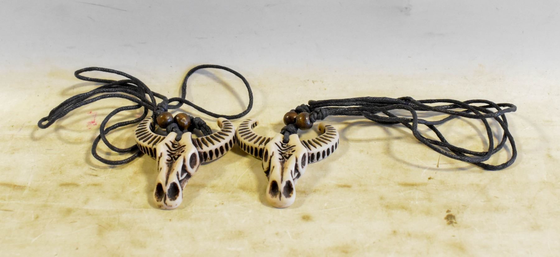 4 BULL HORN HEAD PENDANTS AND NECKLACES