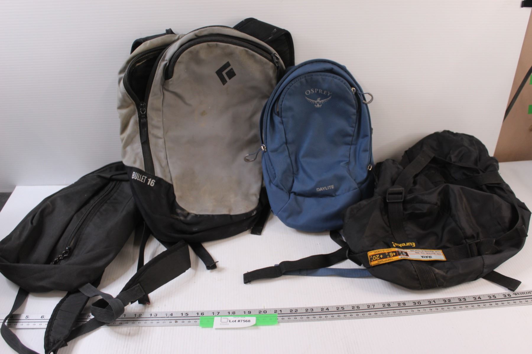 (4) Backpacks - Assorted Sizes: Osprey, Quesha, Bullet 6, Misc.