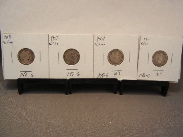 (4) Barber Dimes: (2) 1907, 1911, and 1913