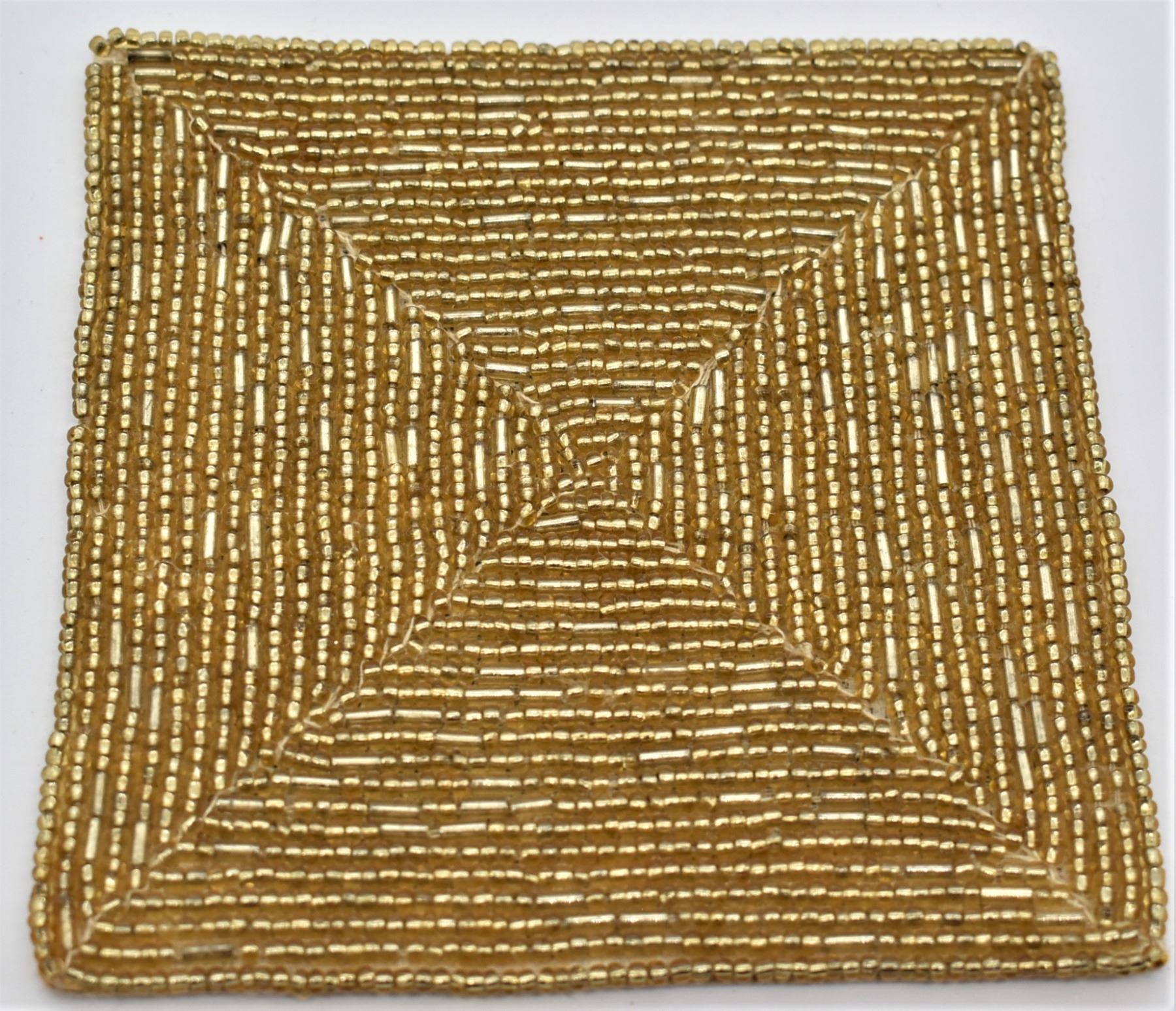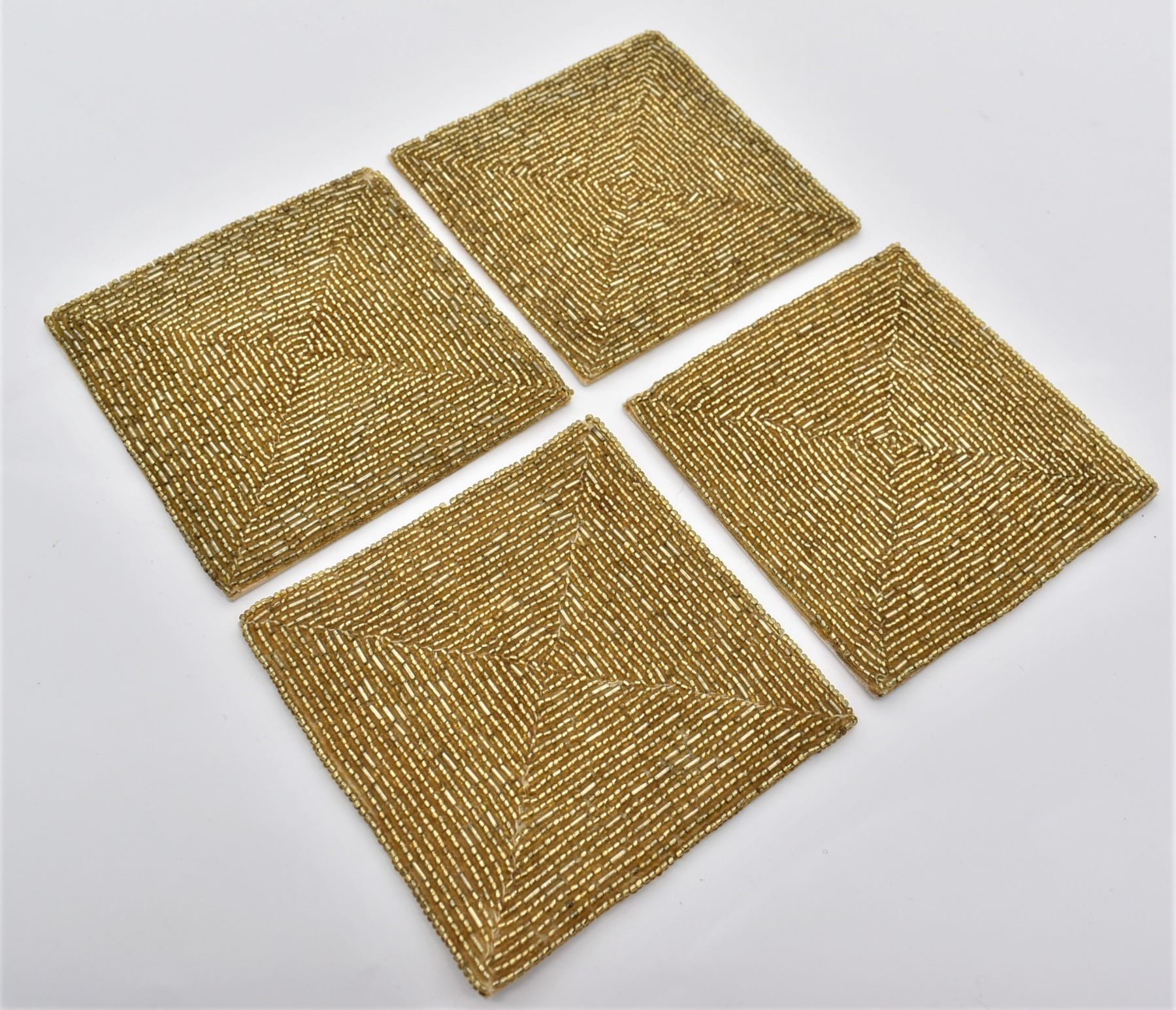 4 Beaded Coasters with Satin Backing, measures 4'' square
